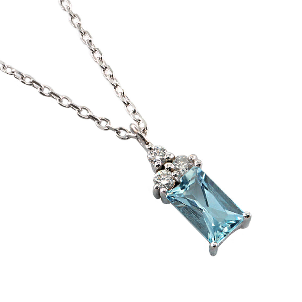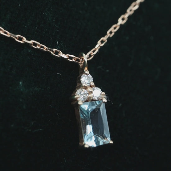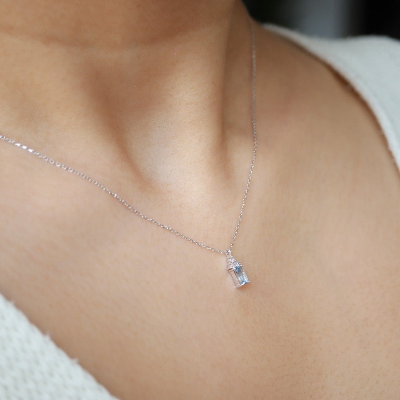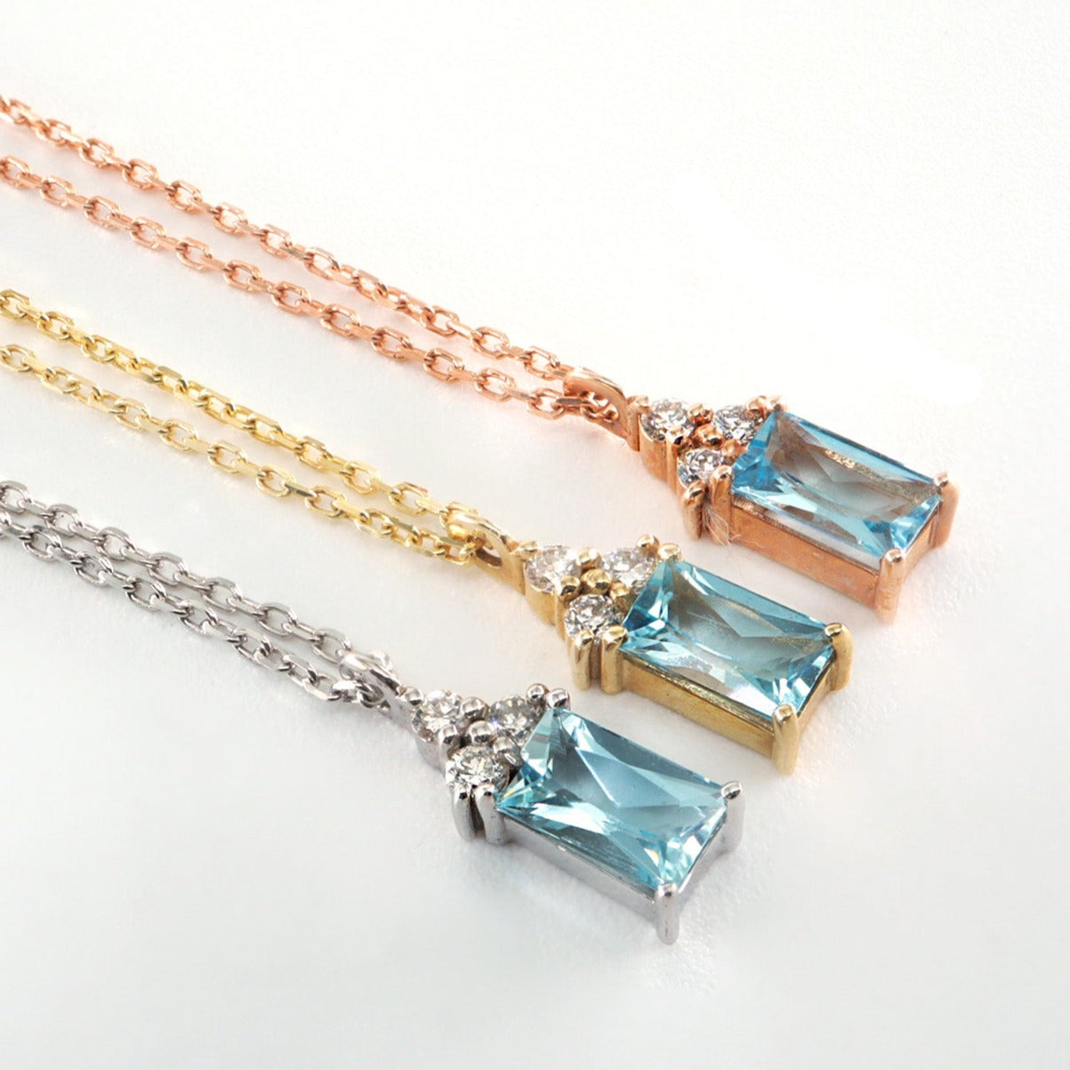 Baget Kesim Akuamarin & Pırlanta Kolye