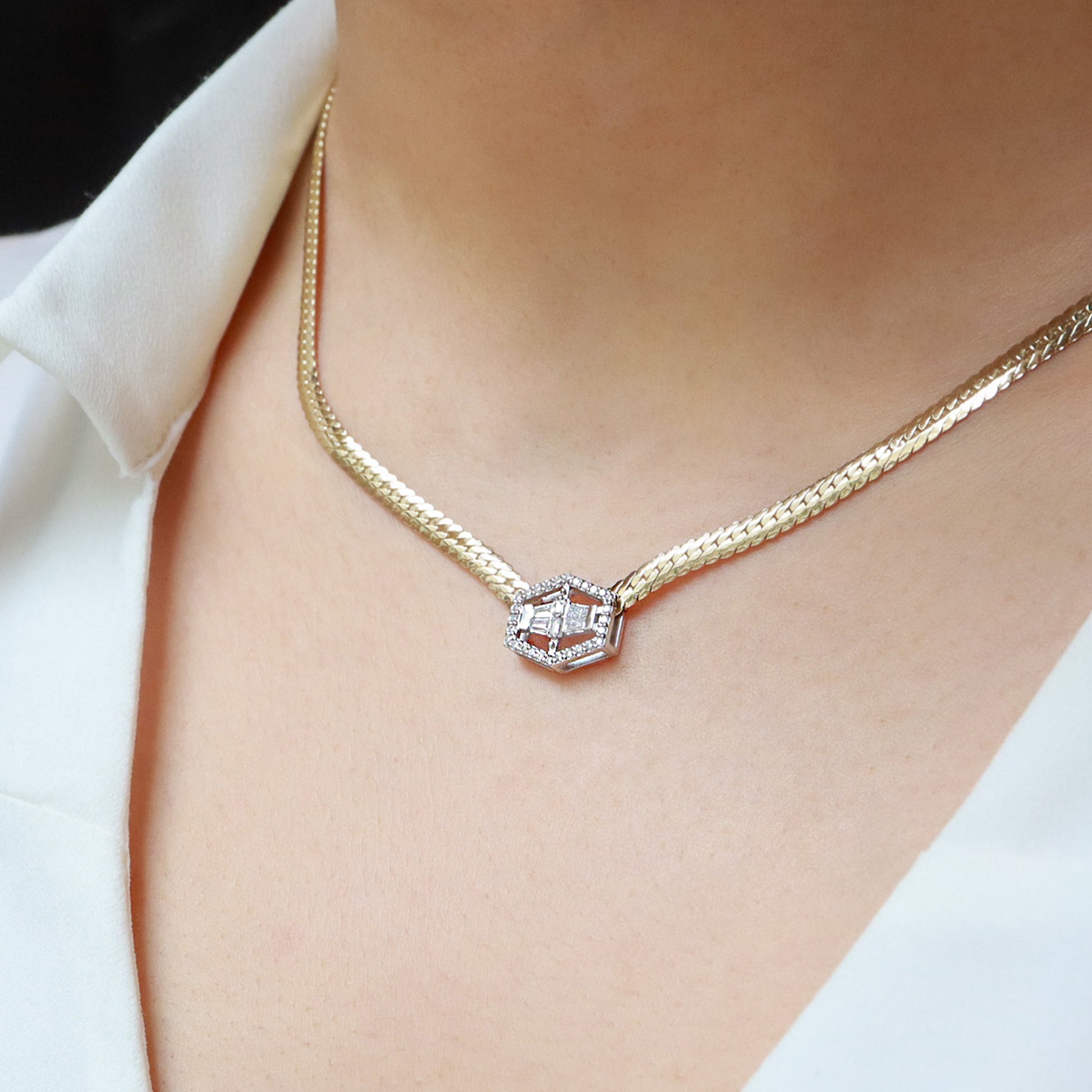 0,30ct Balık Sırtı Zincirli Pırlanta Baget Kolye