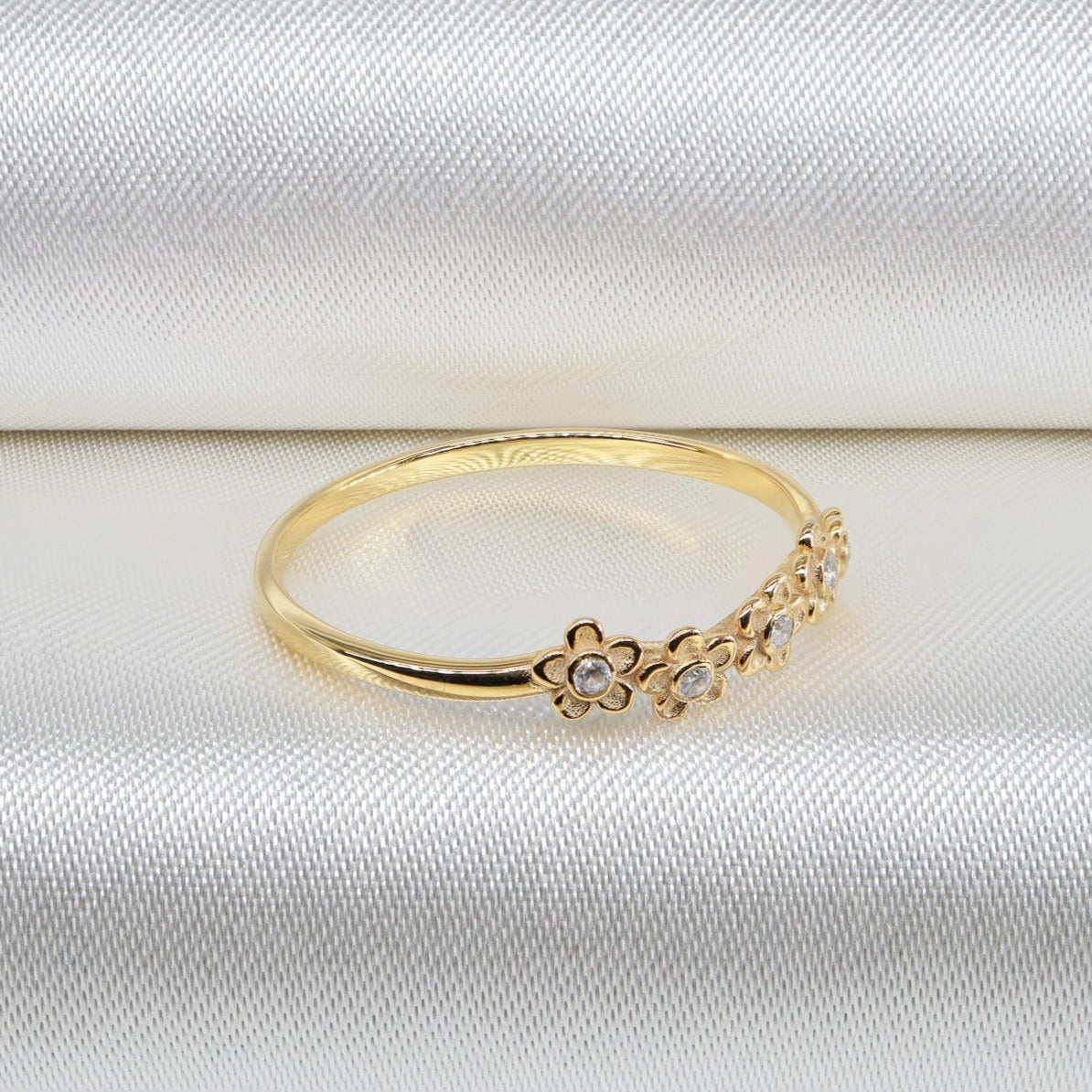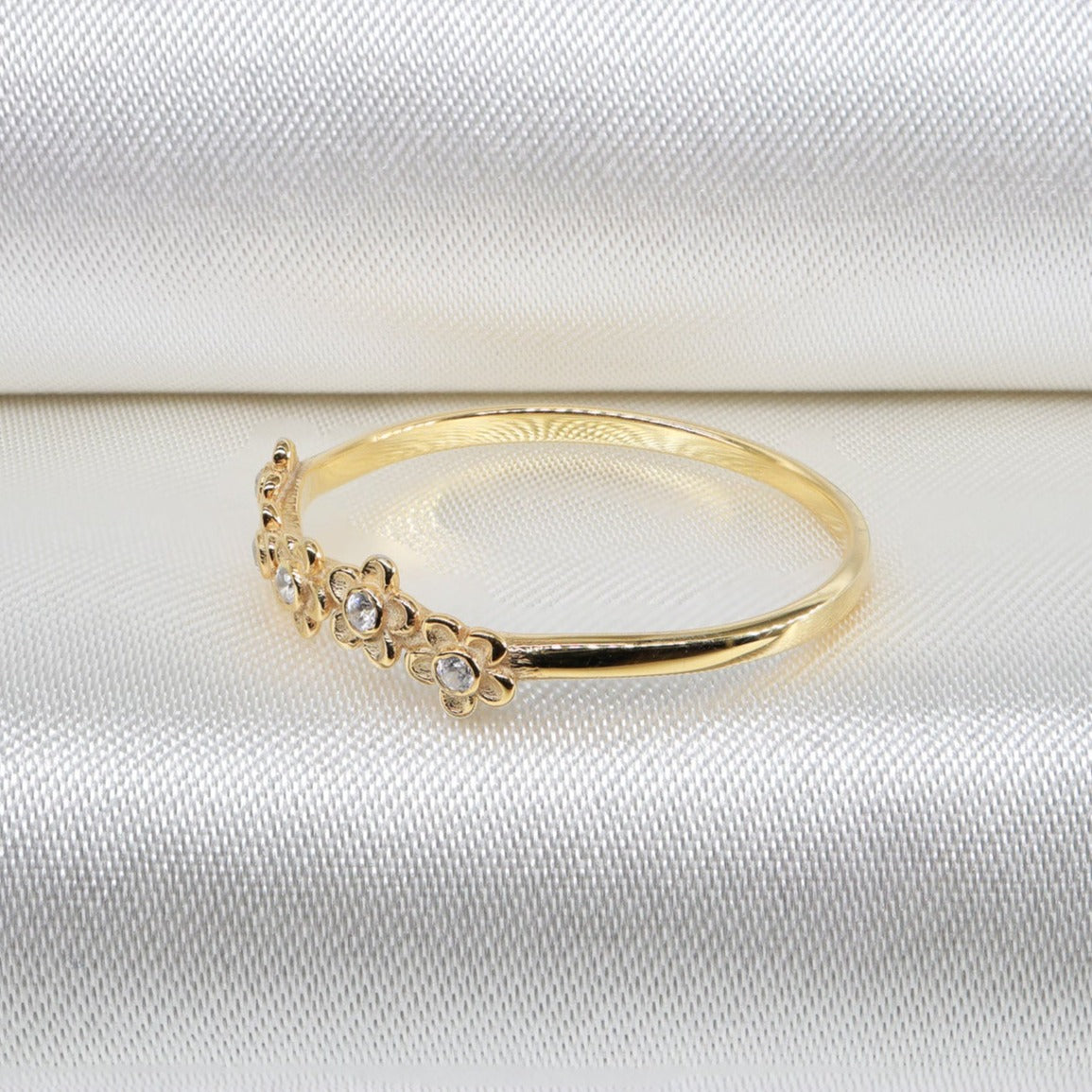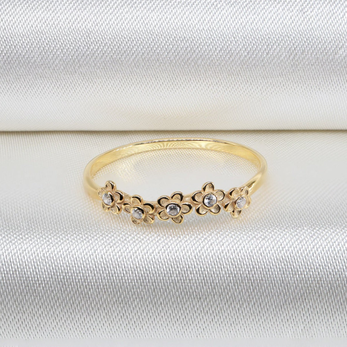 Pırlantalı Papatya Motifli Minimal Yüzük