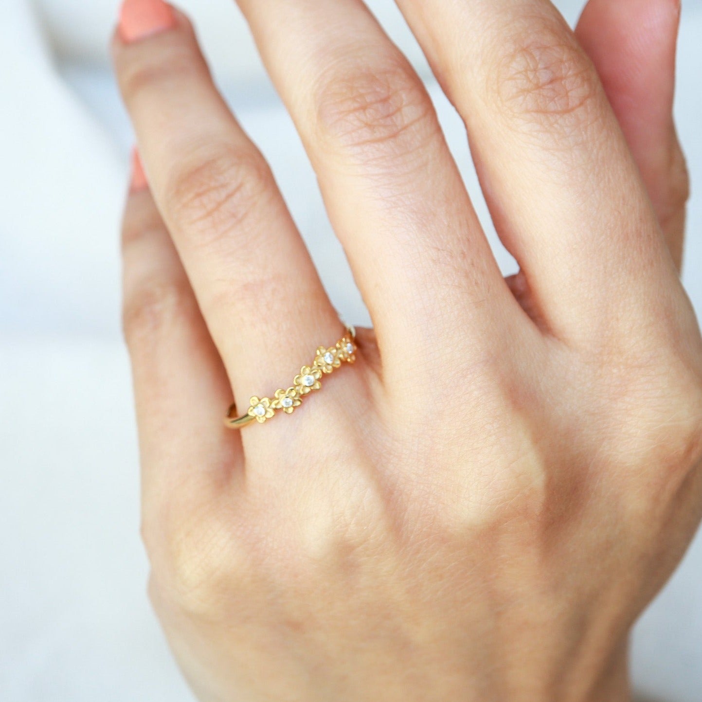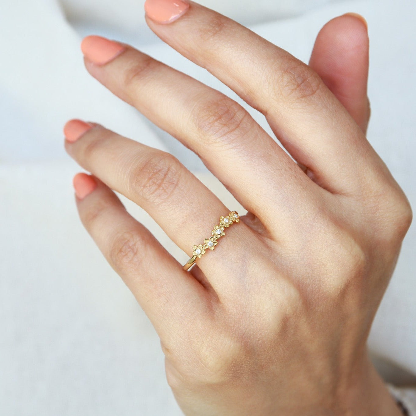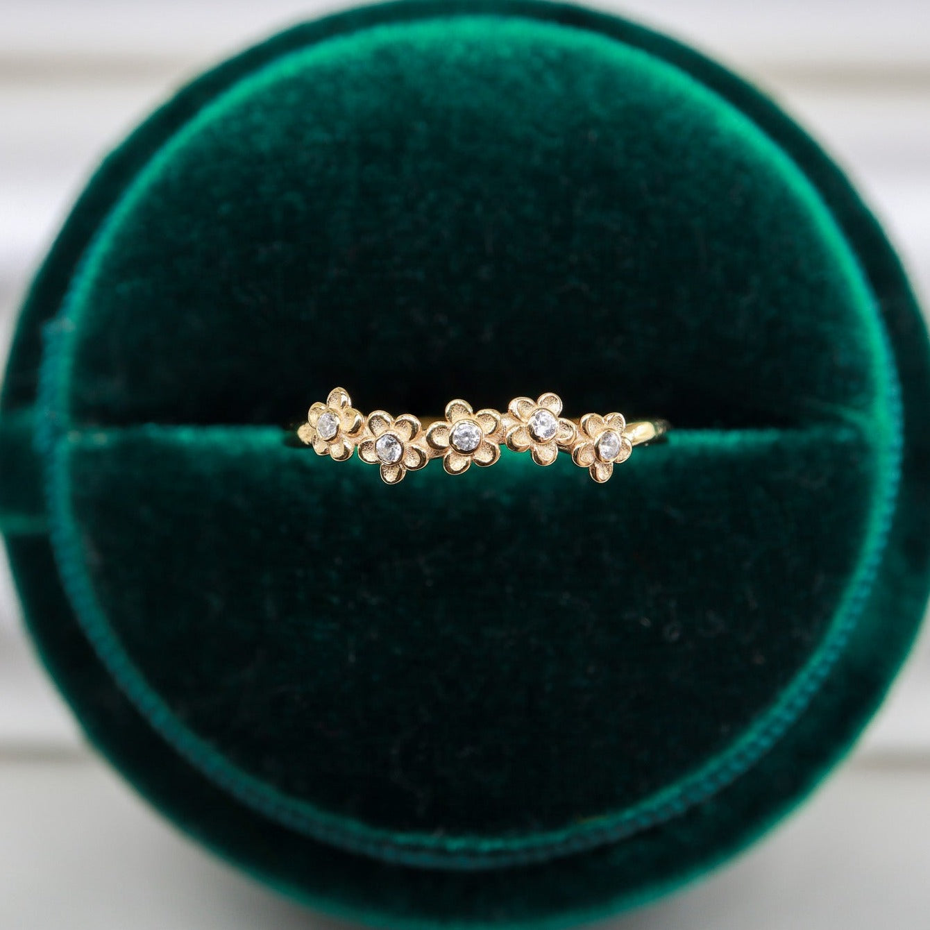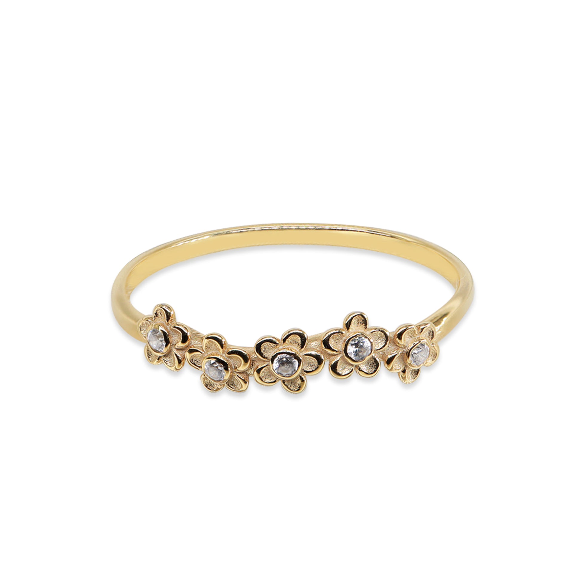 Pırlantalı Papatya Motifli Minimal Yüzük