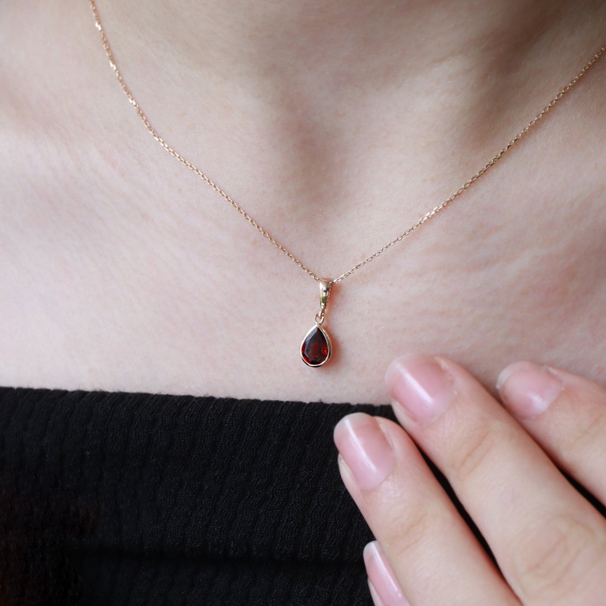Doğum Ayı Taşı Garnet Damla Kolye (Ocak)