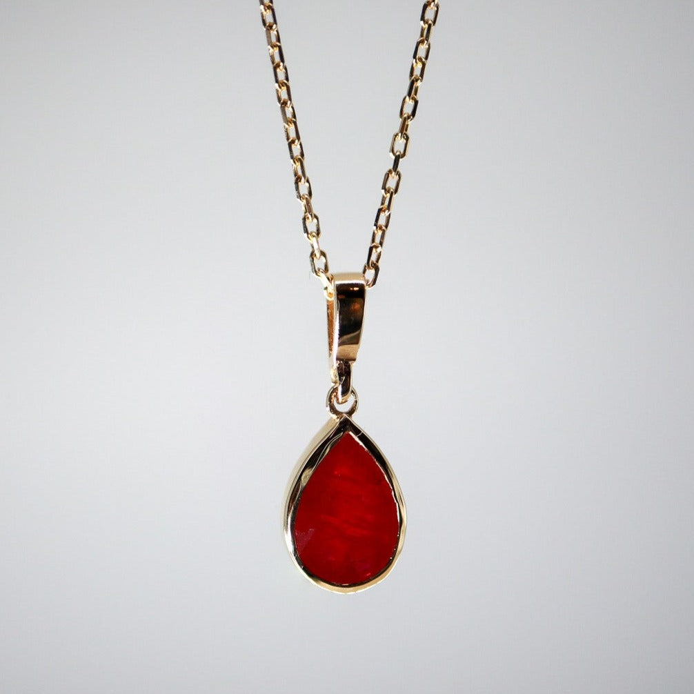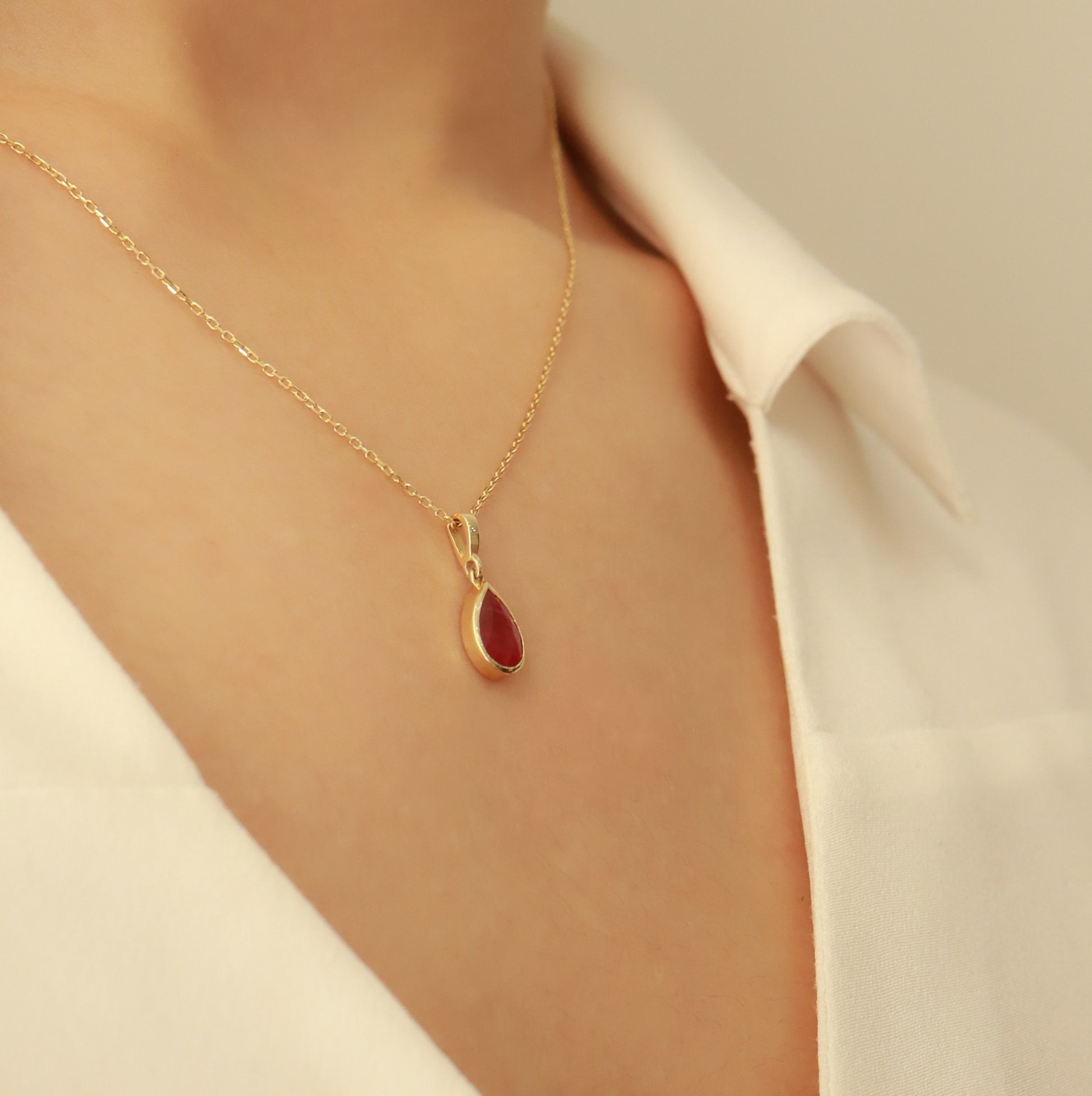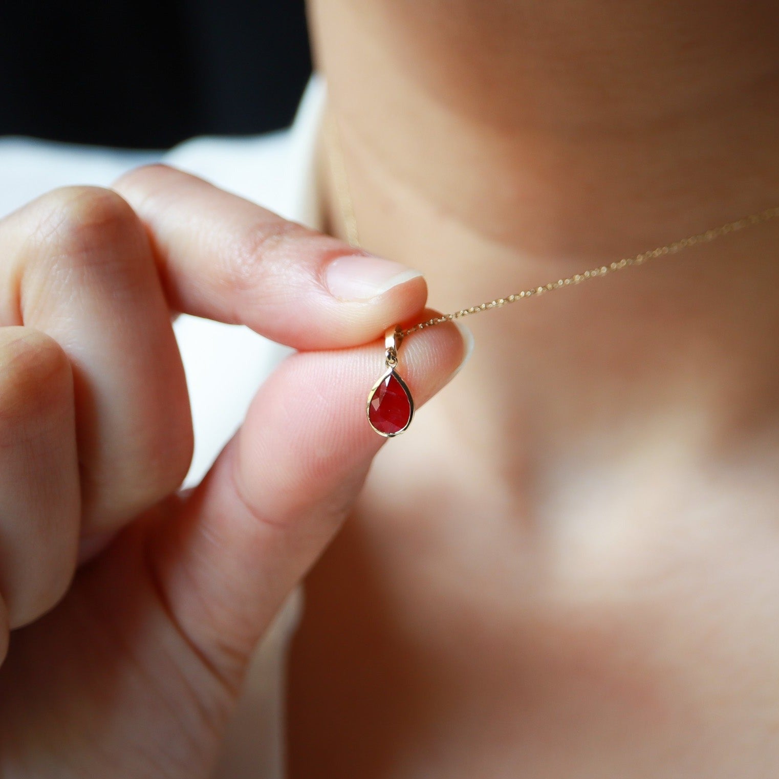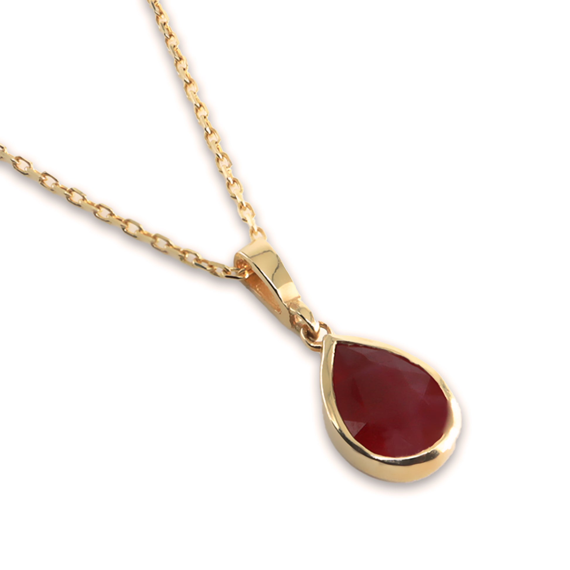 Doğum Ayı Taşı Yakut Damla Kolye (Temmuz)