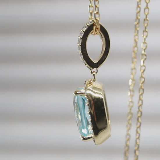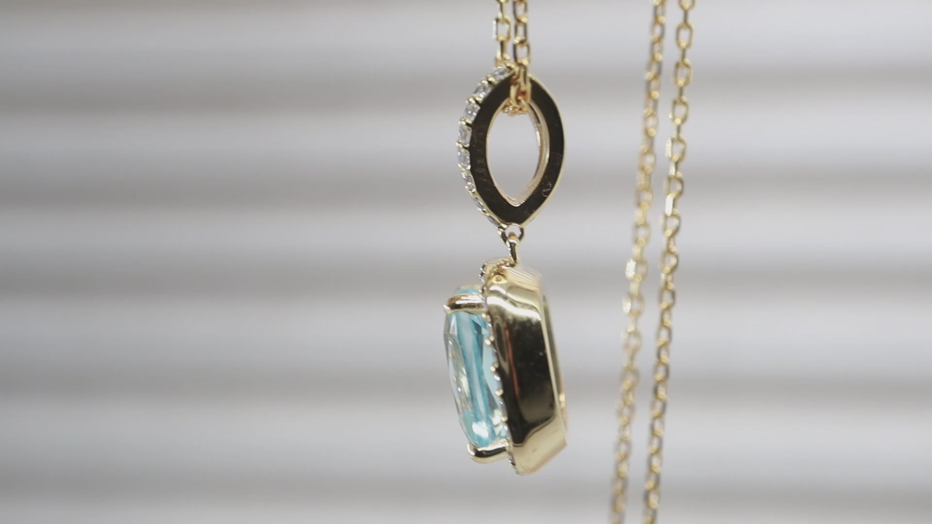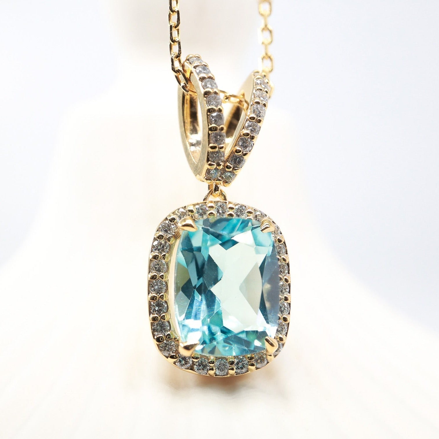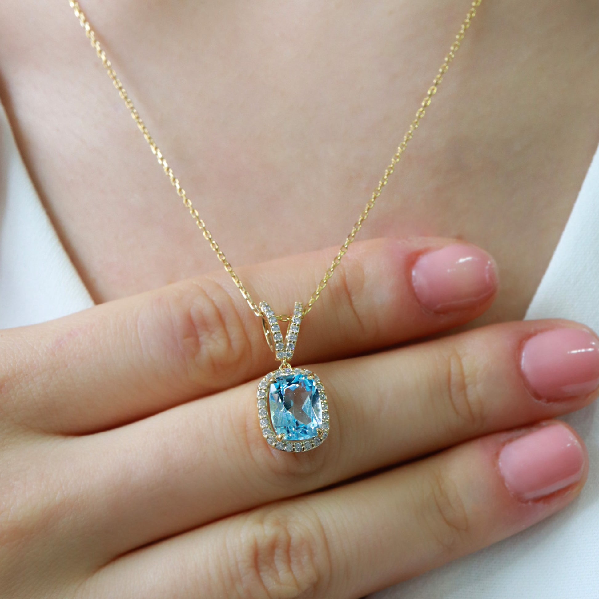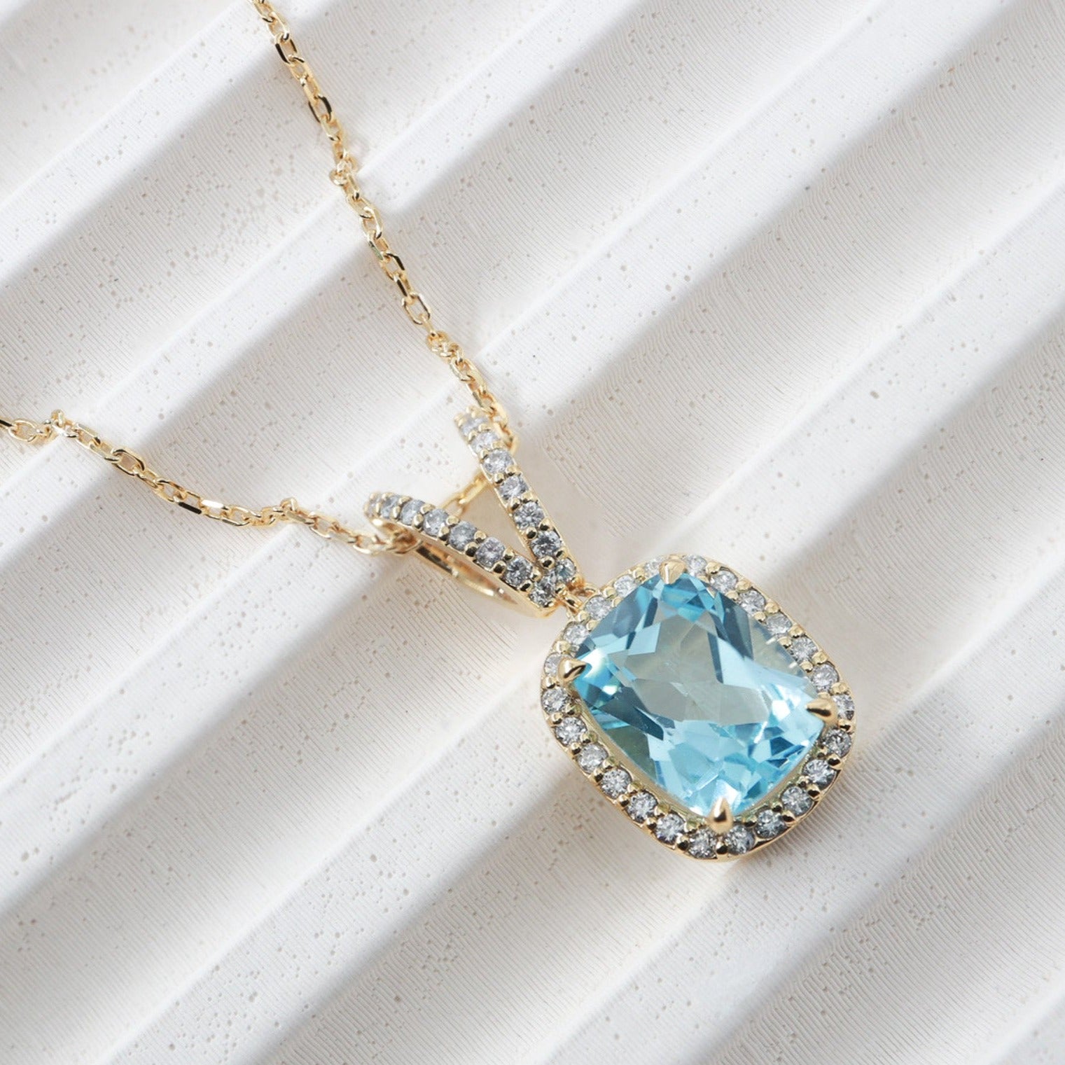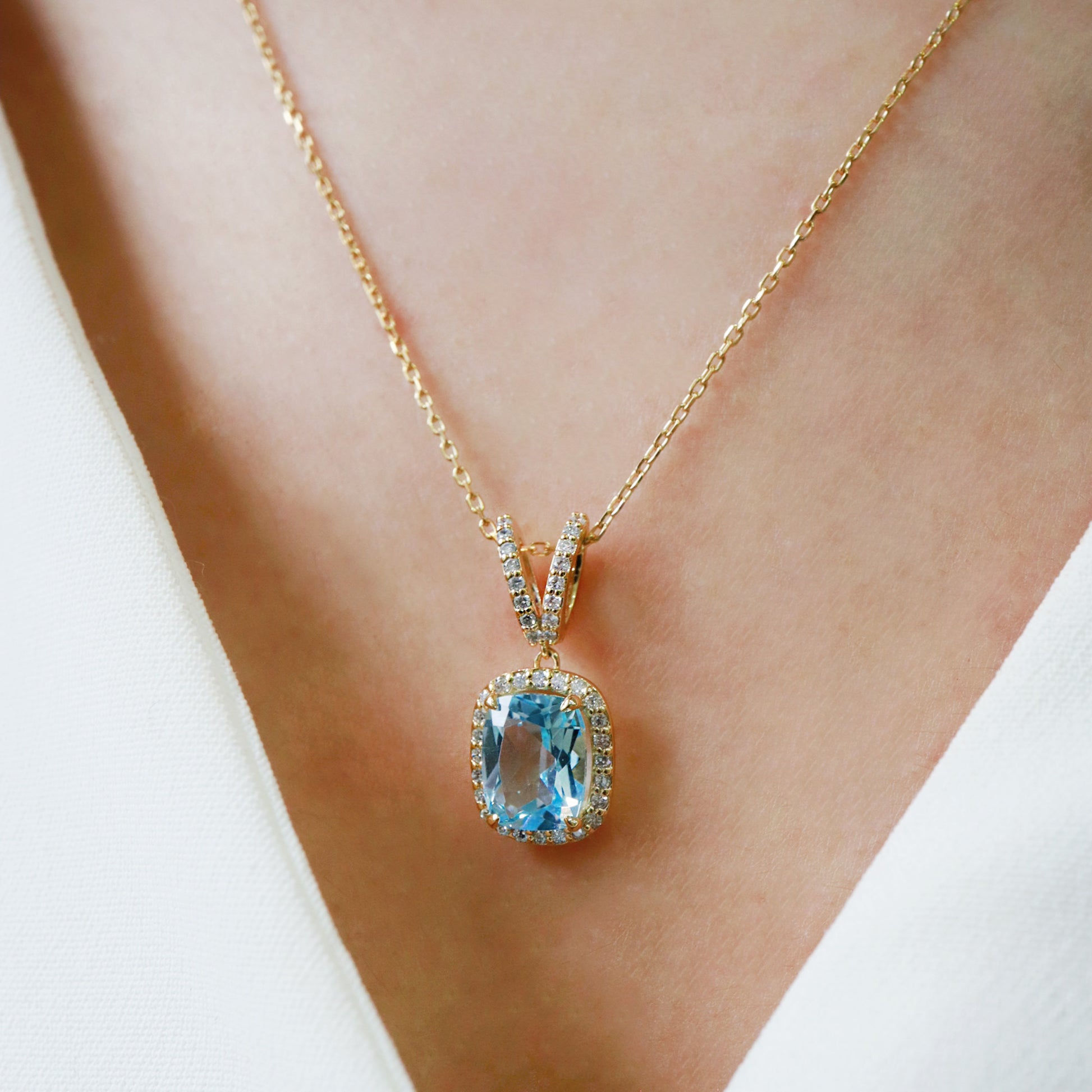 Cushion Kesim Mavi Topaz & Pırlanta Kolye
