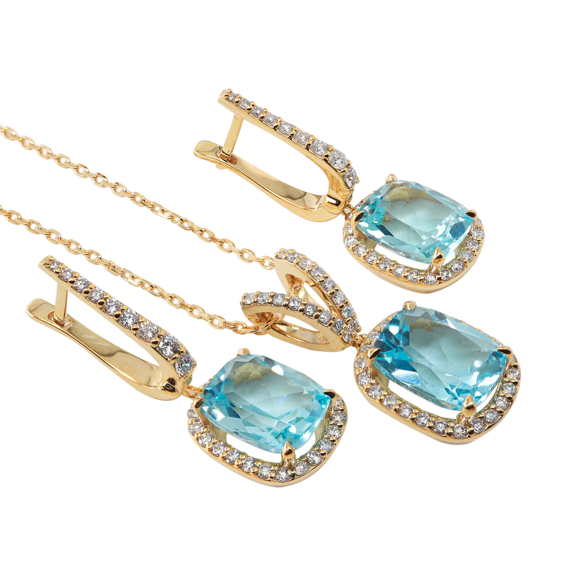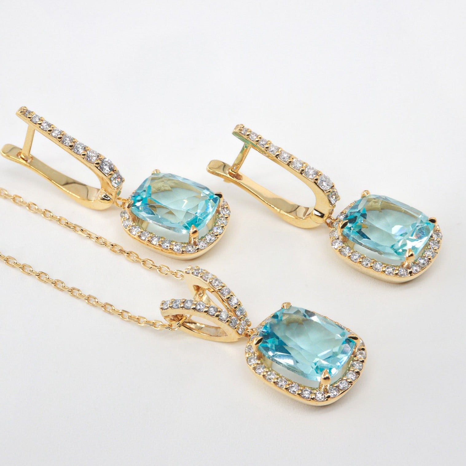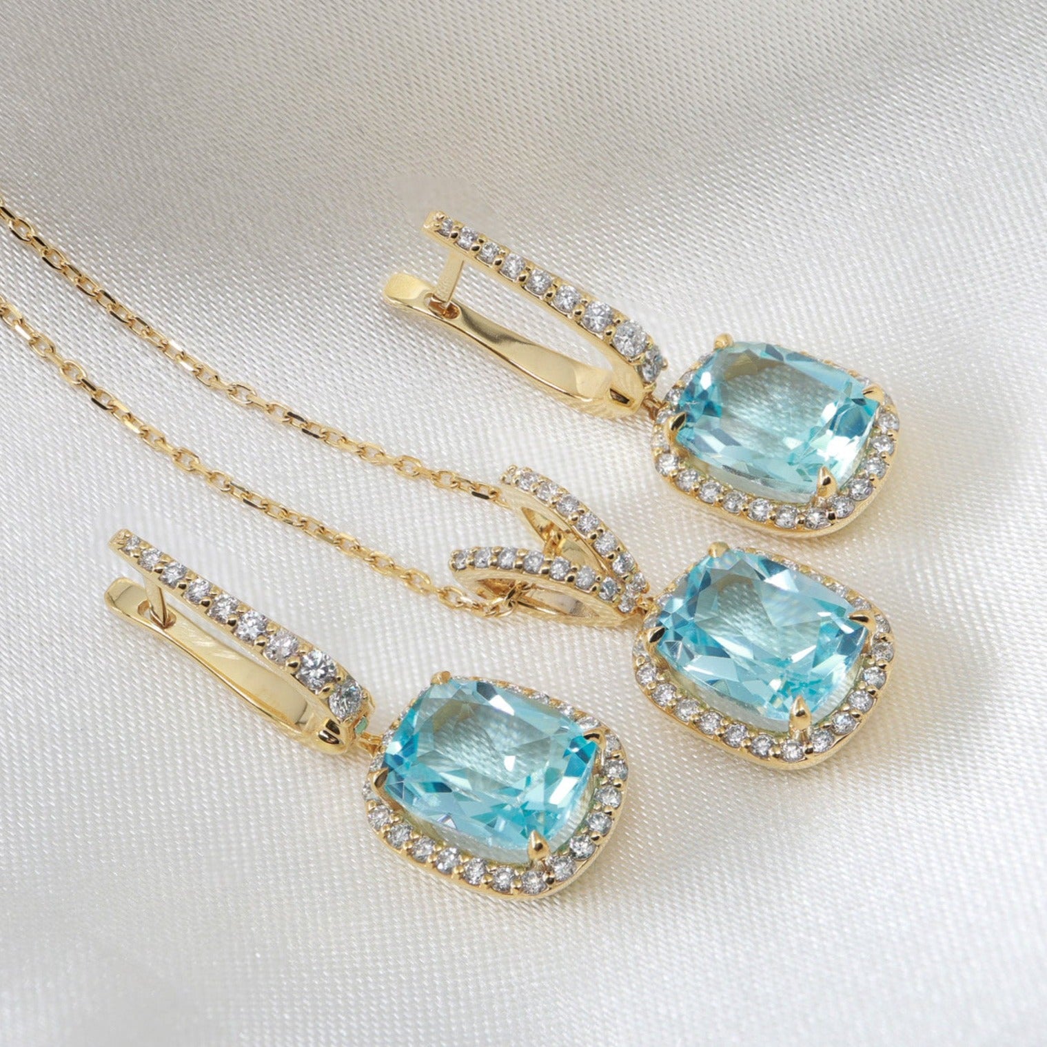 Cushion Kesim Mavi Topaz & Pırlanta Set
