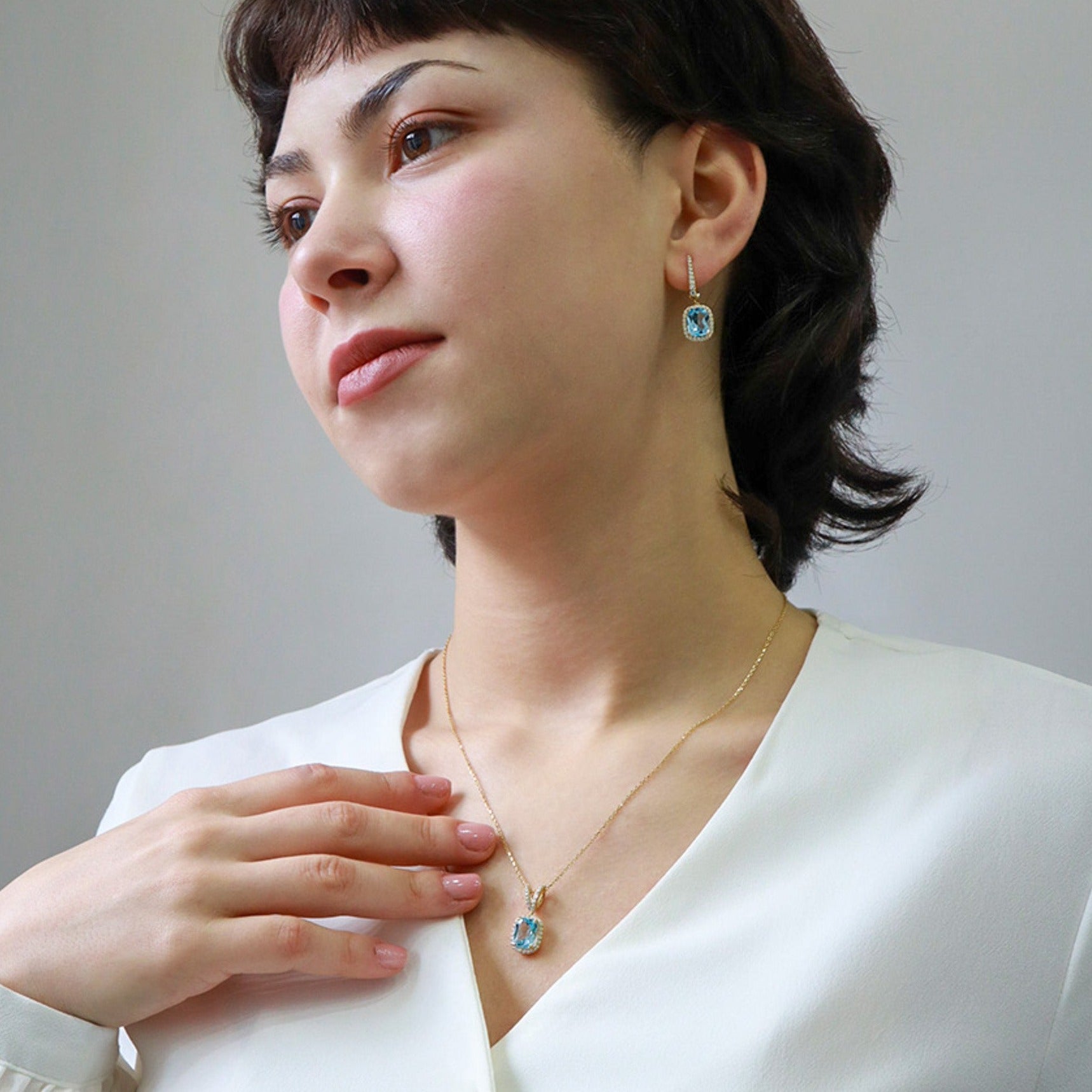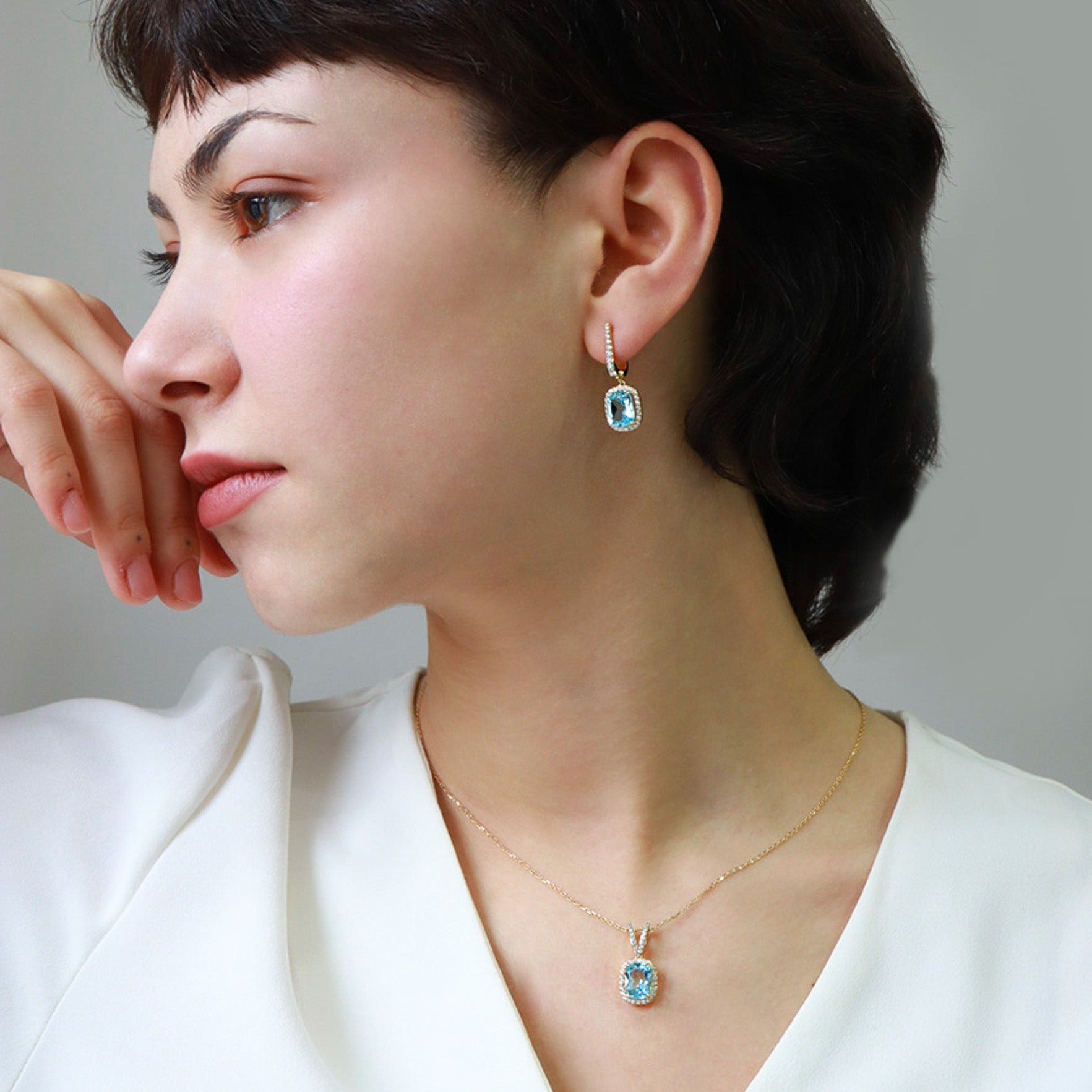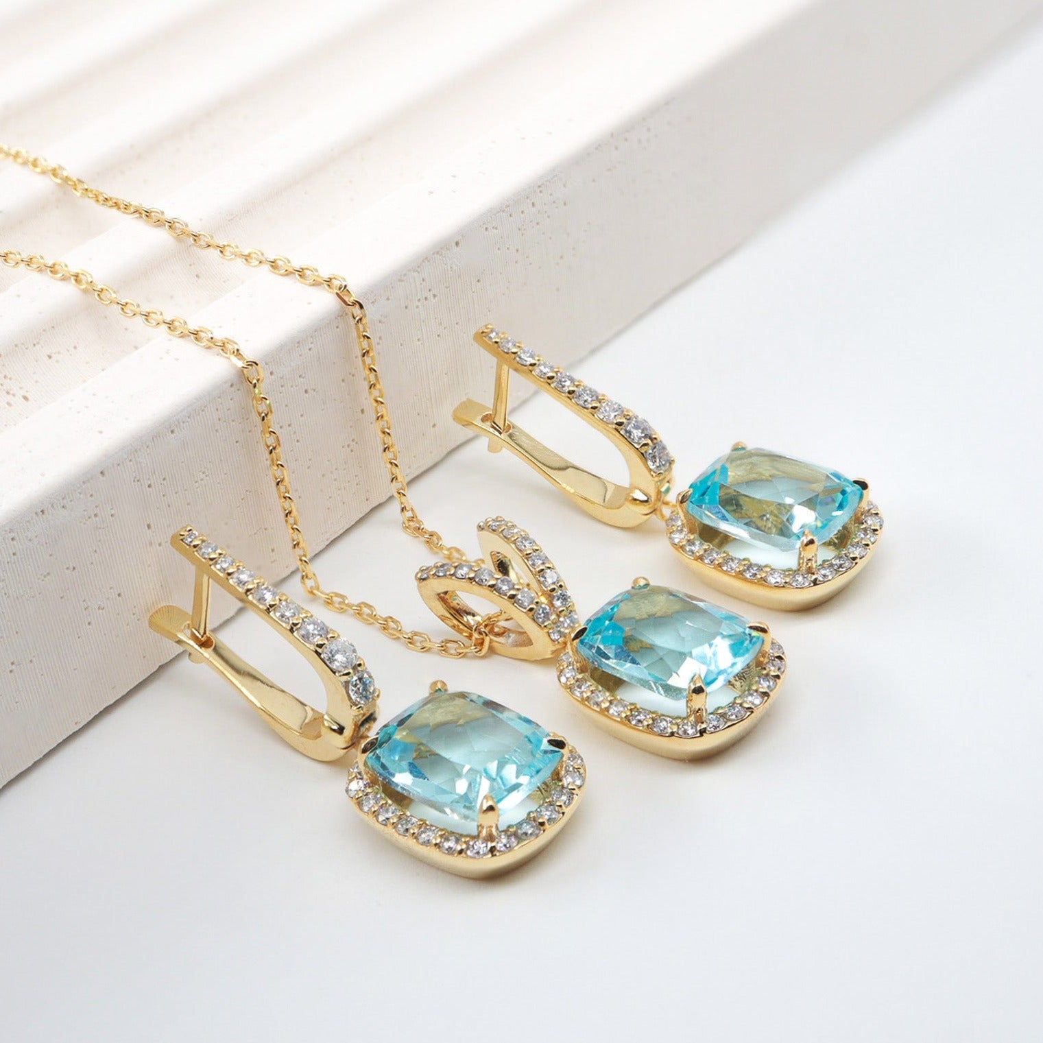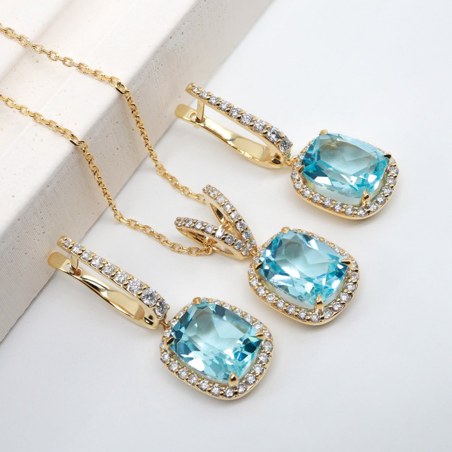 Cushion Kesim Mavi Topaz & Pırlanta Set