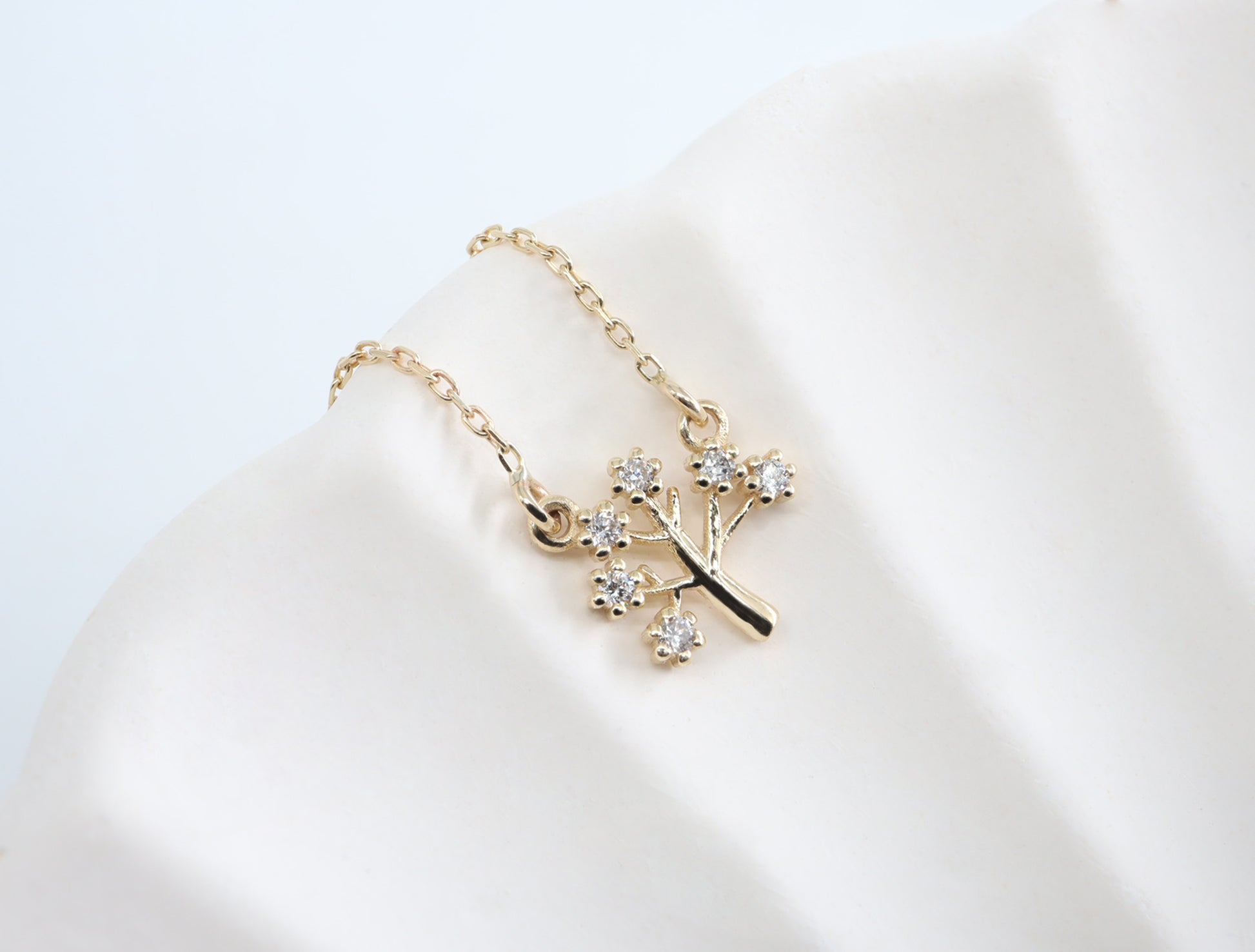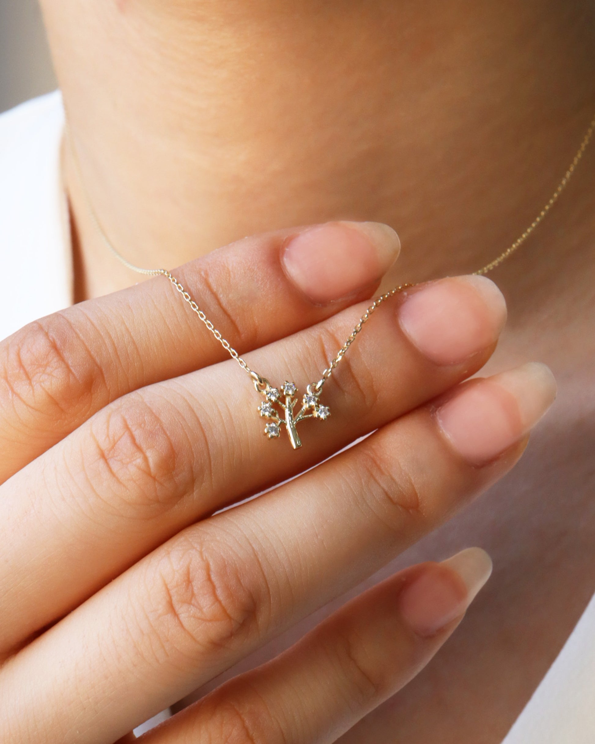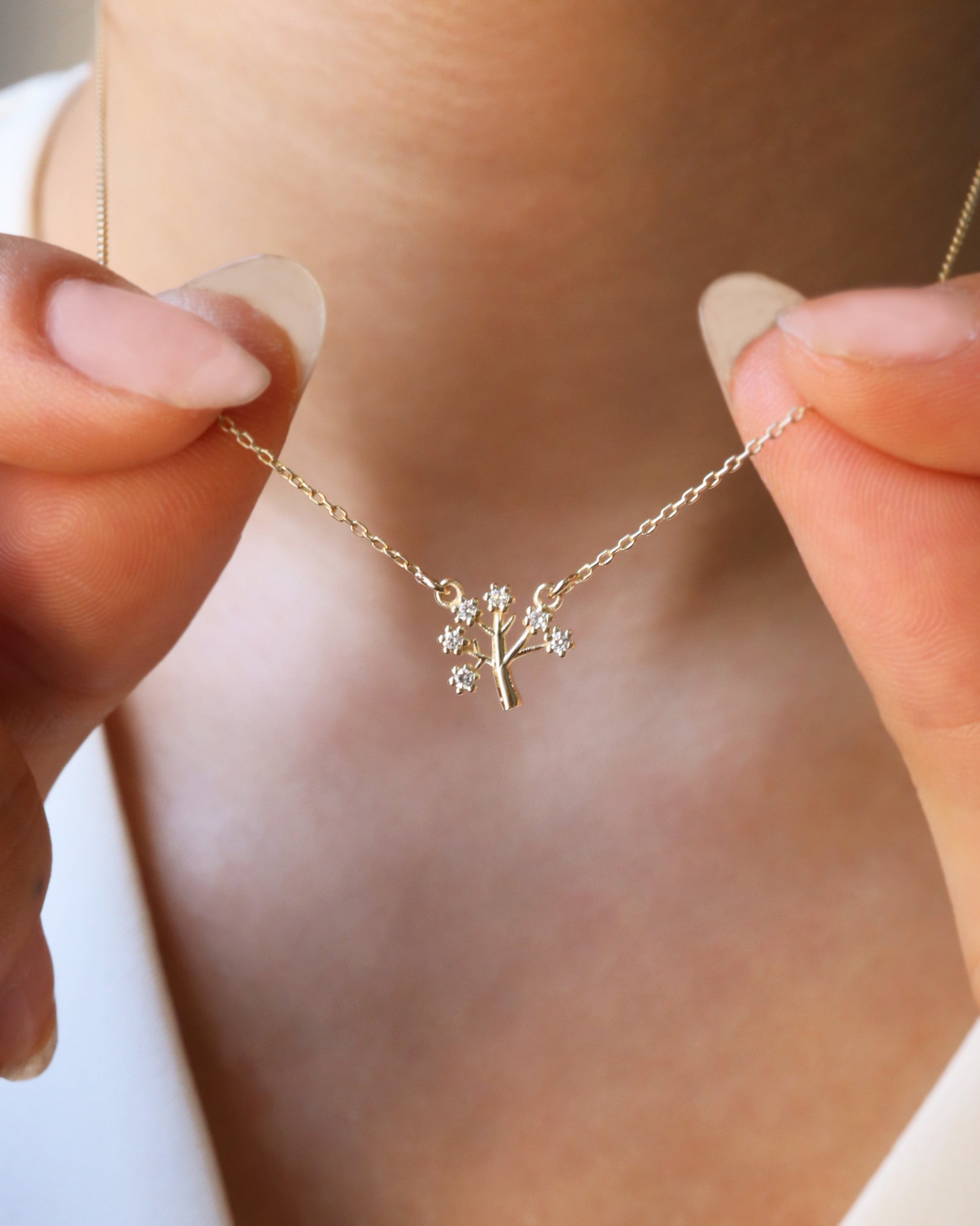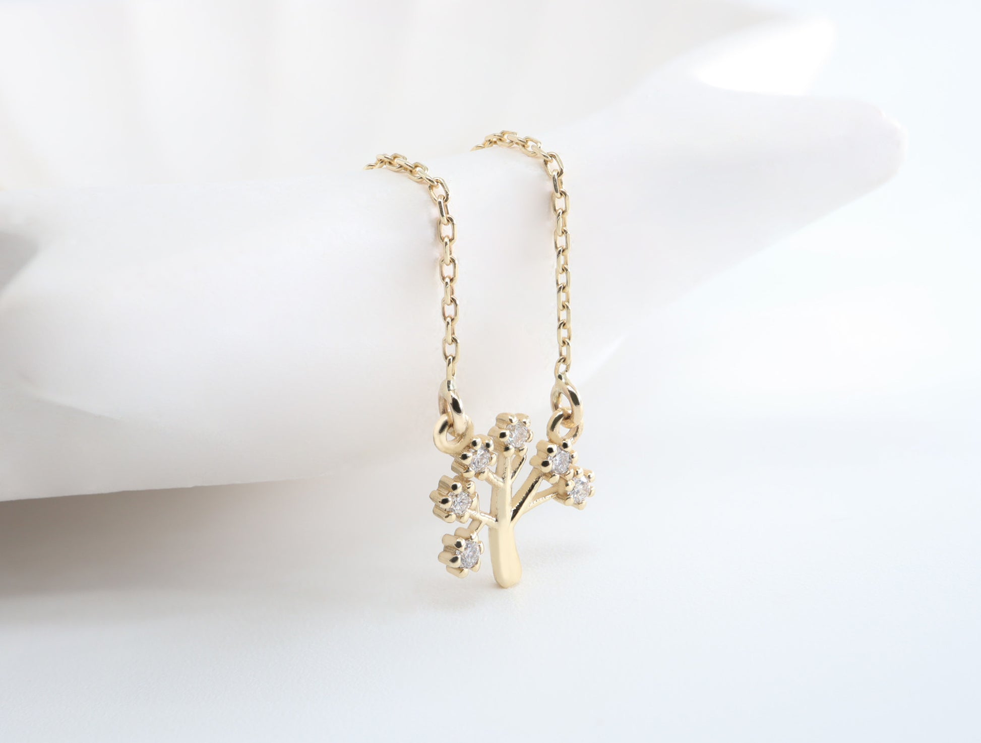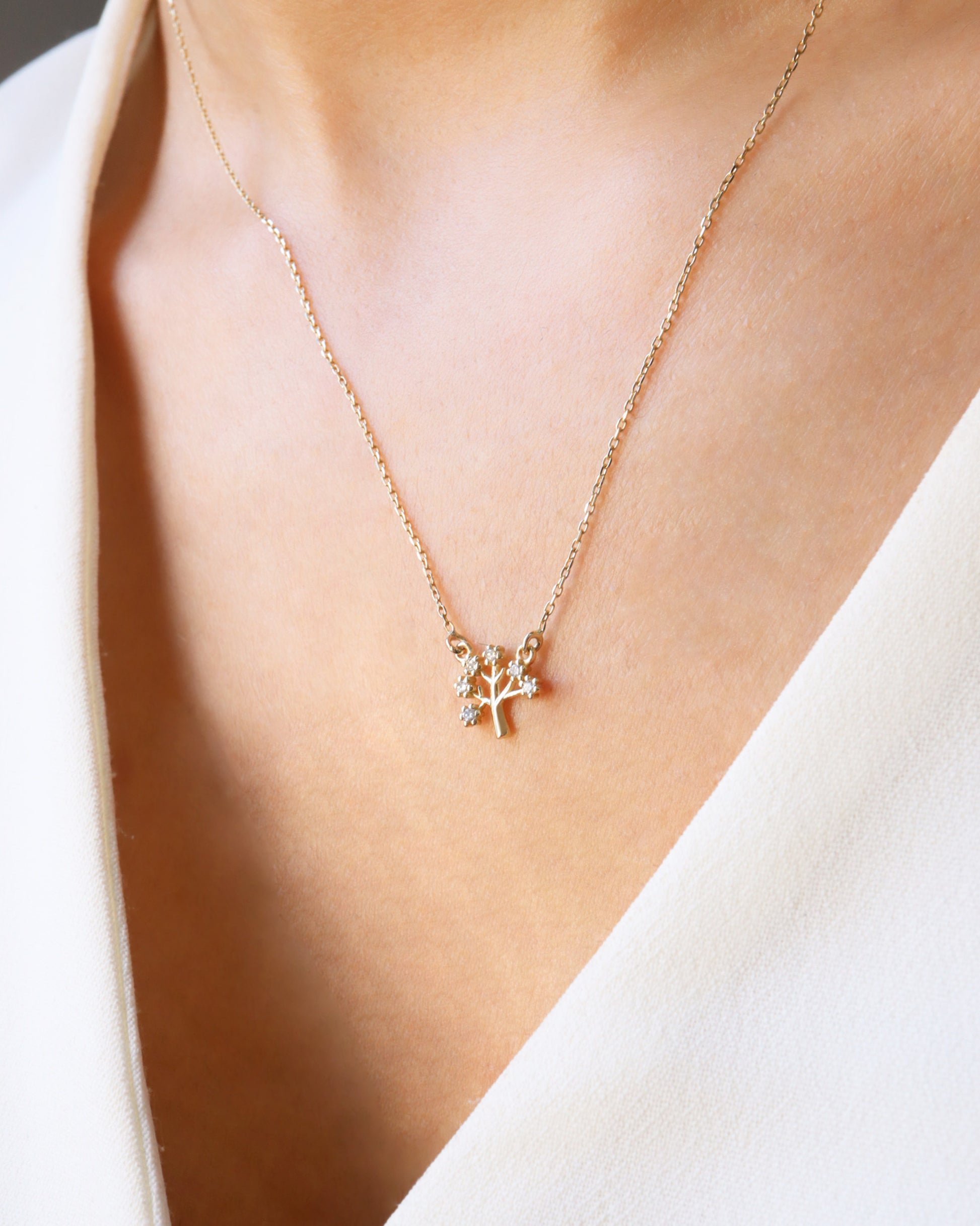 Minimal Pırlantalı Hayat Ağacı Kolye
