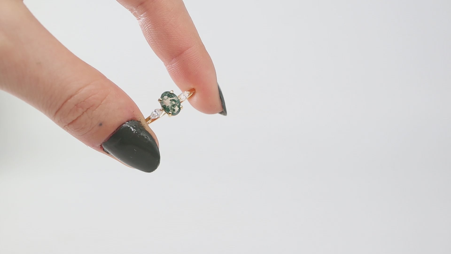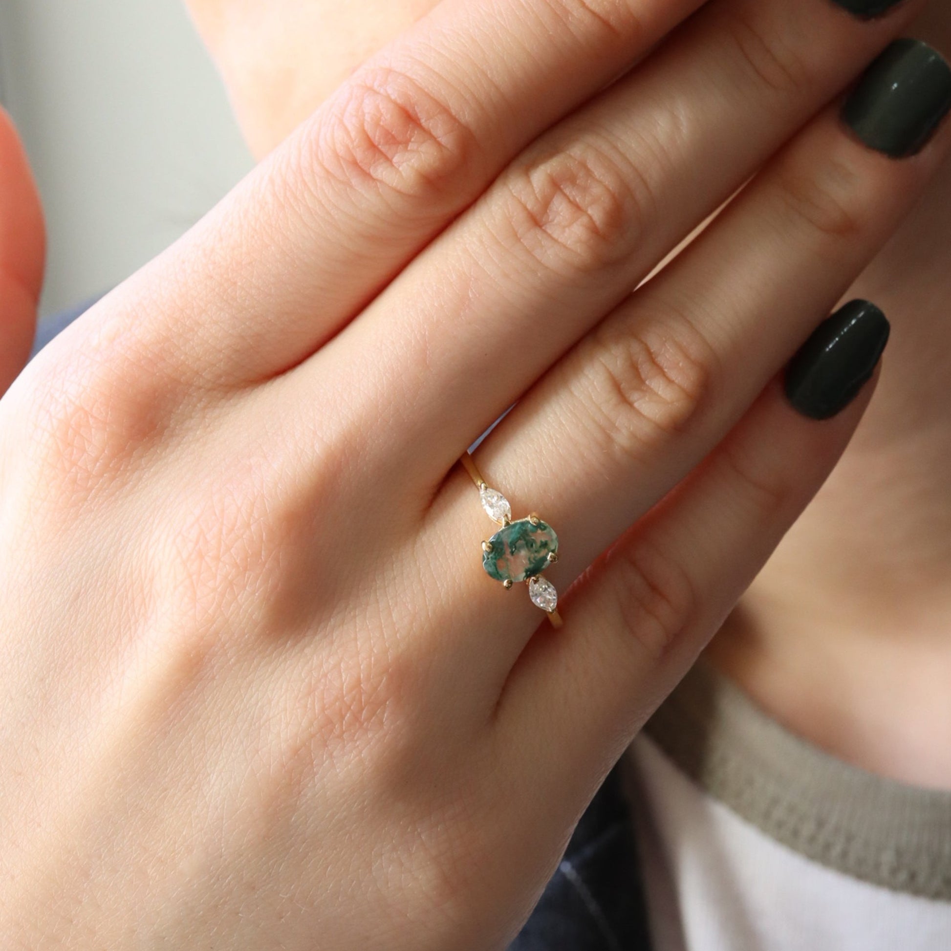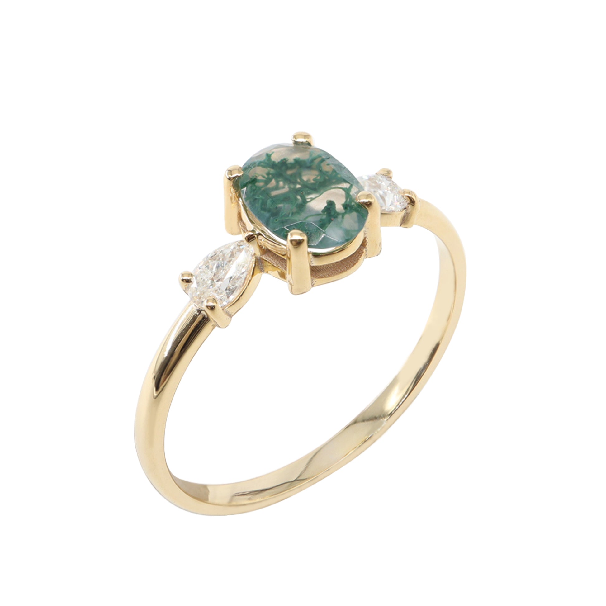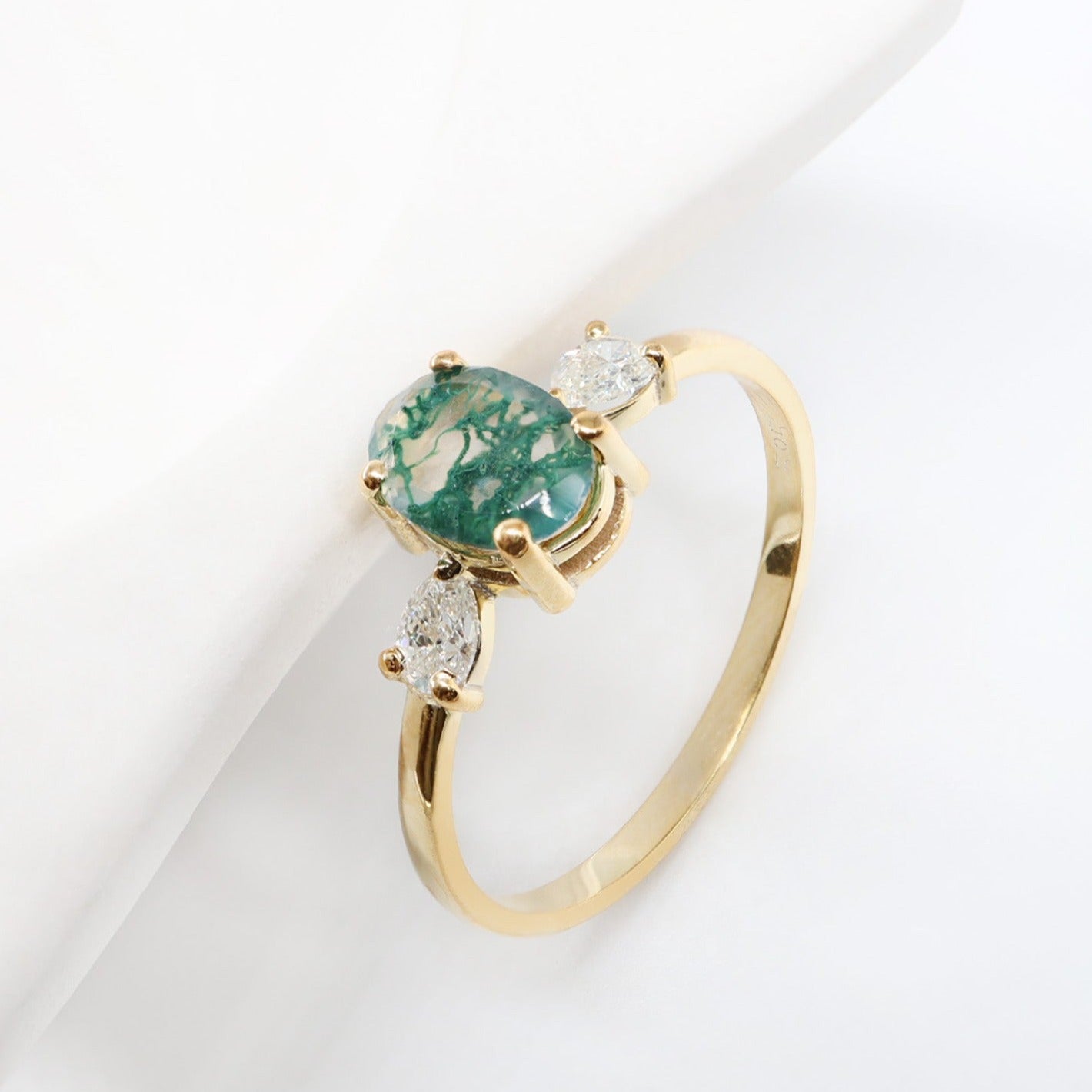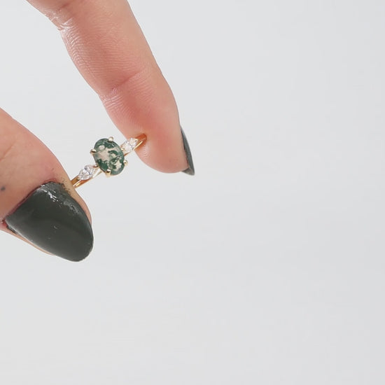 Oval Kesim Moss Agate & Pırlanta Yüzük