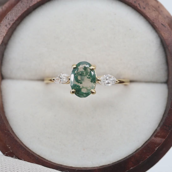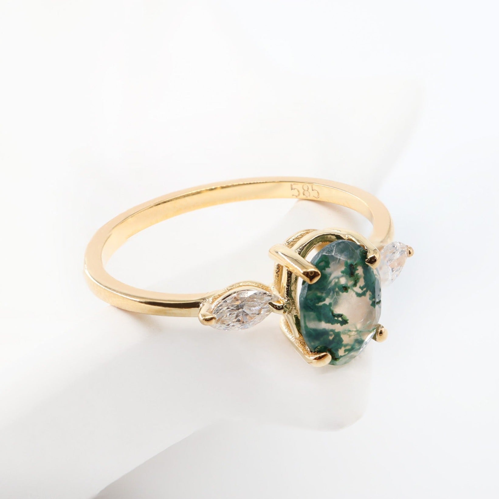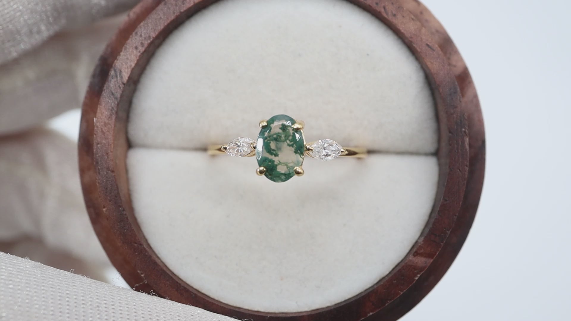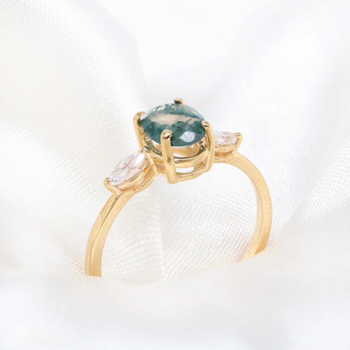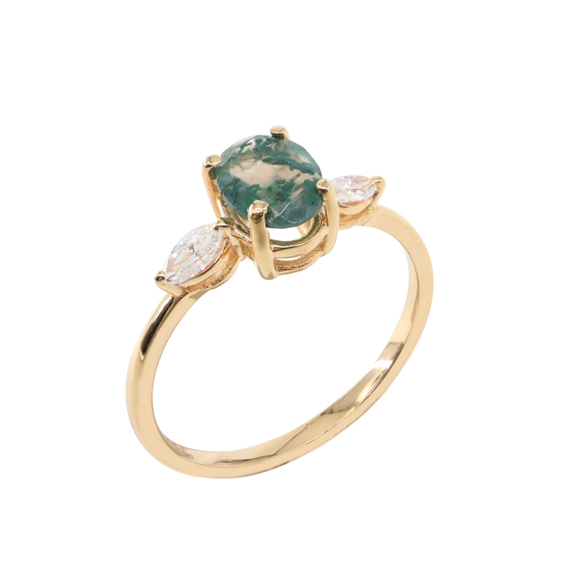 Oval Moss Agate & Markiz Pırlantalı Yüzük
