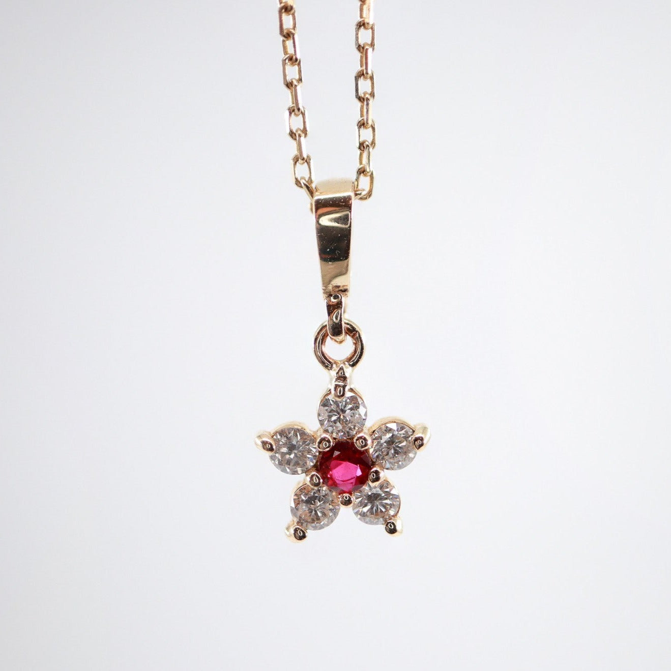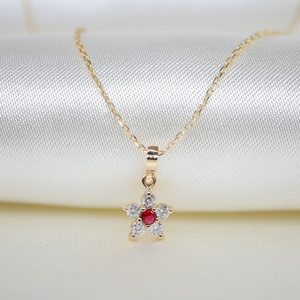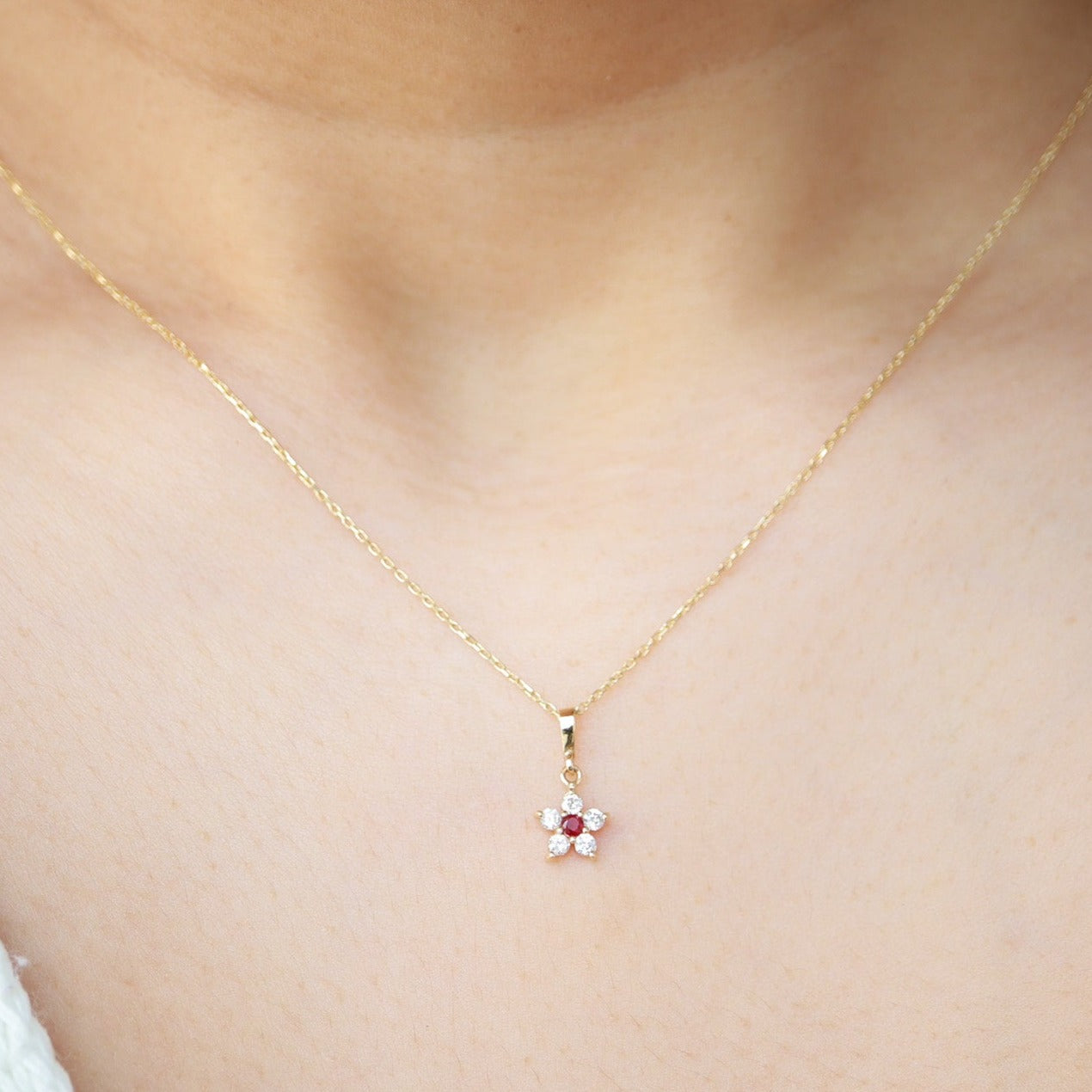 Papatya Model Yakut & Pırlanta Minimal Kolye