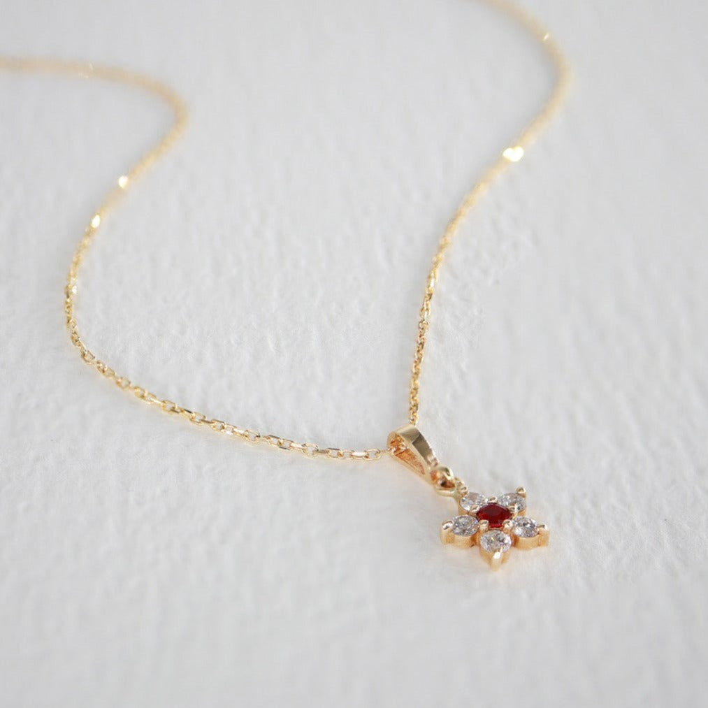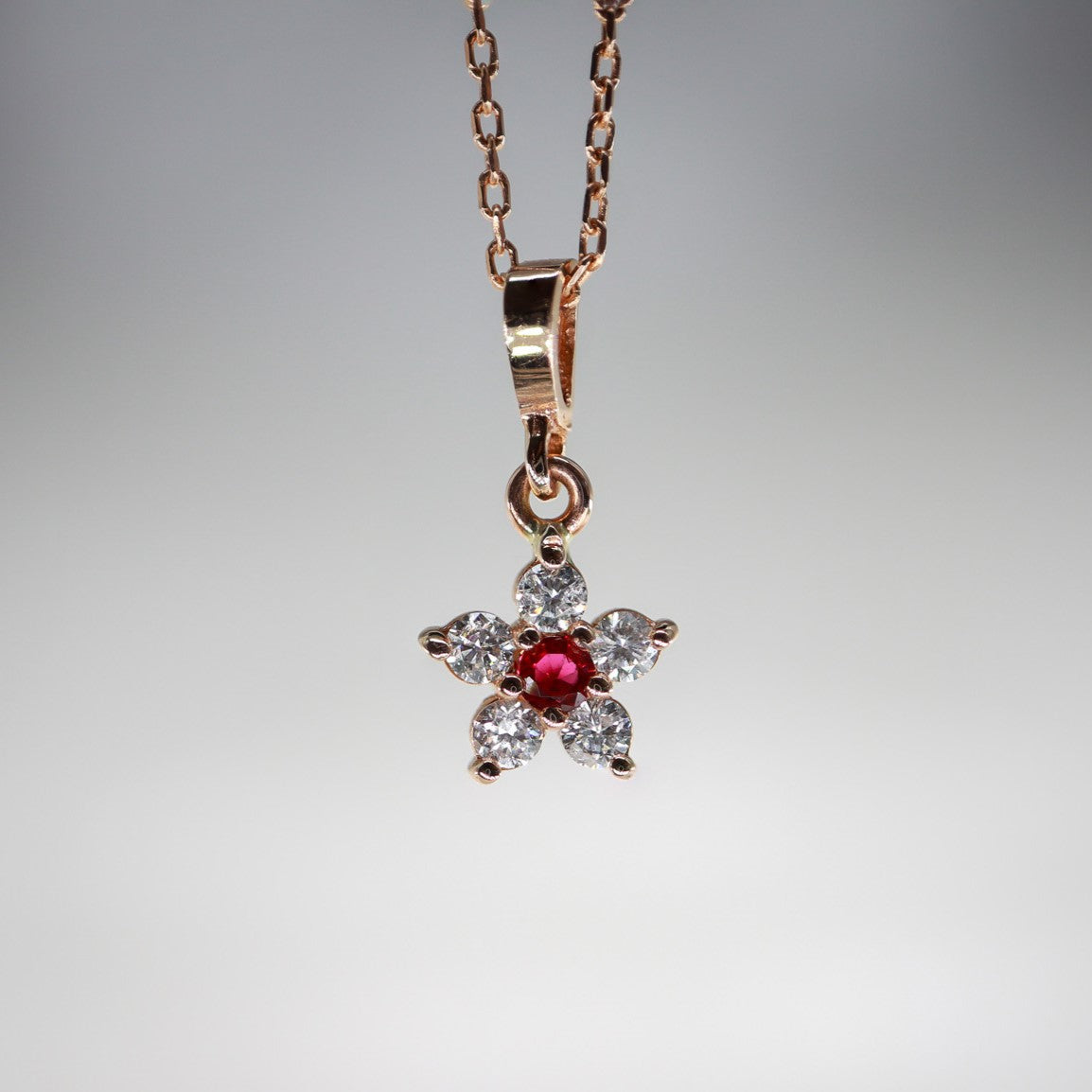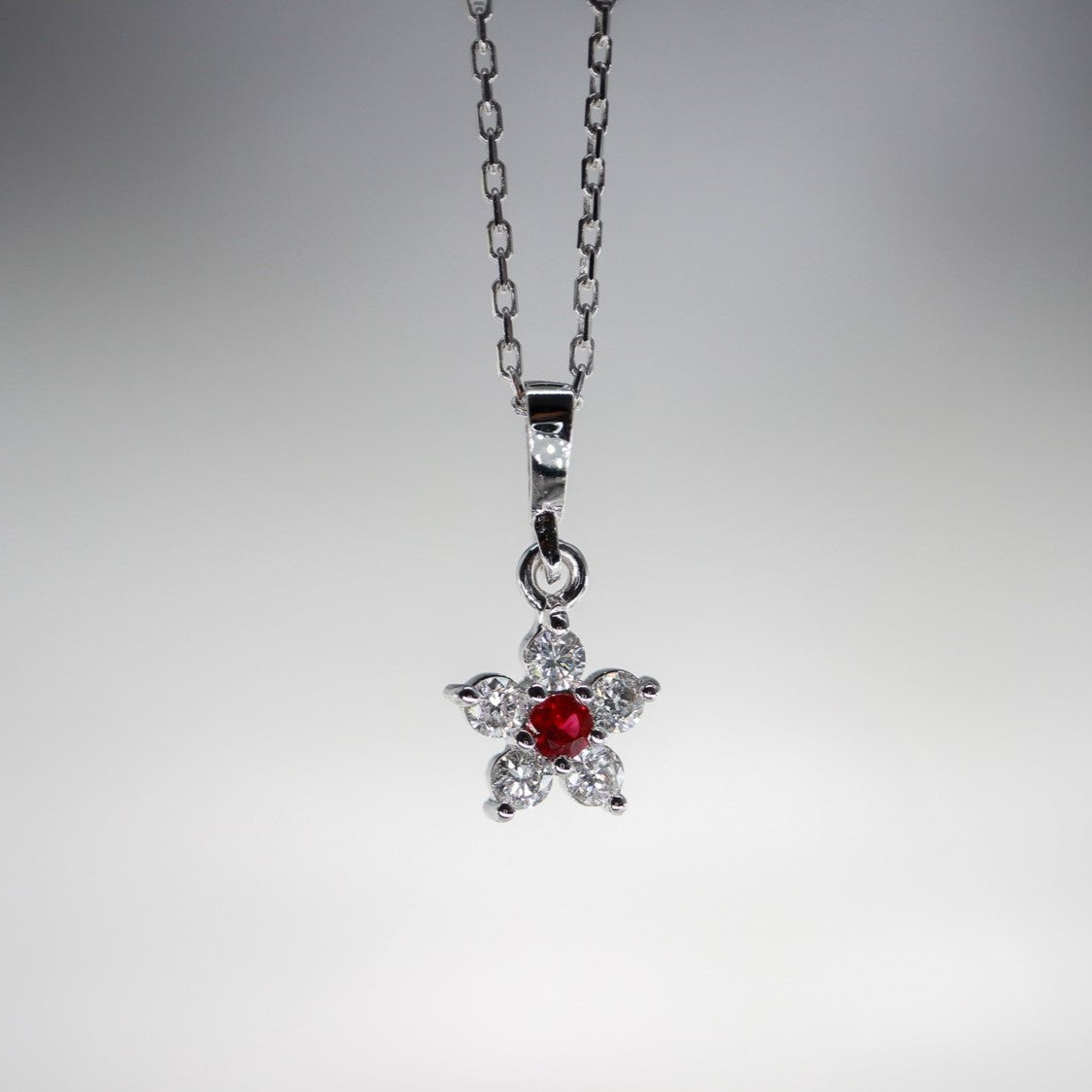 Papatya Model Yakut & Pırlanta Minimal Kolye