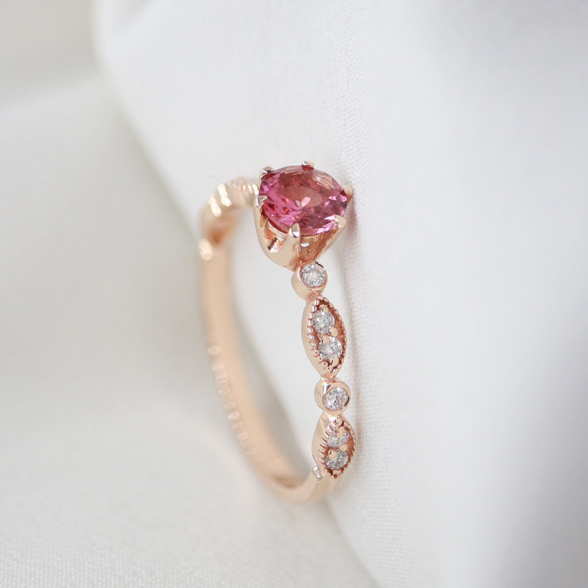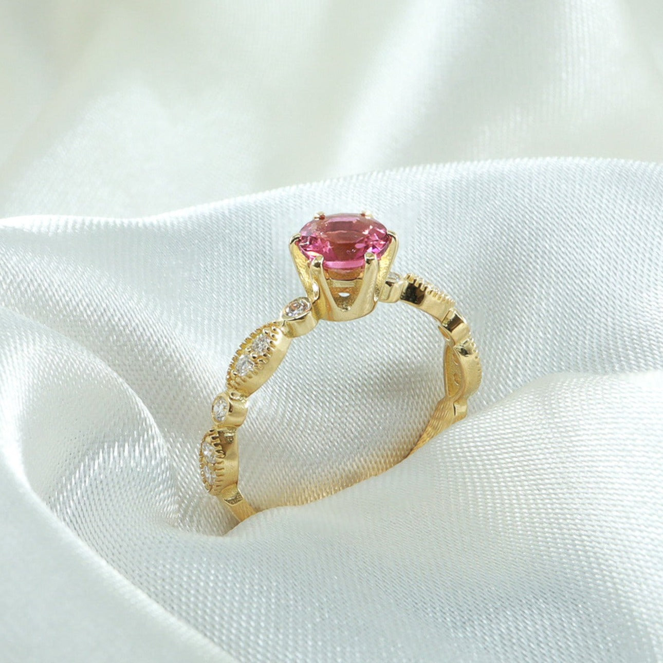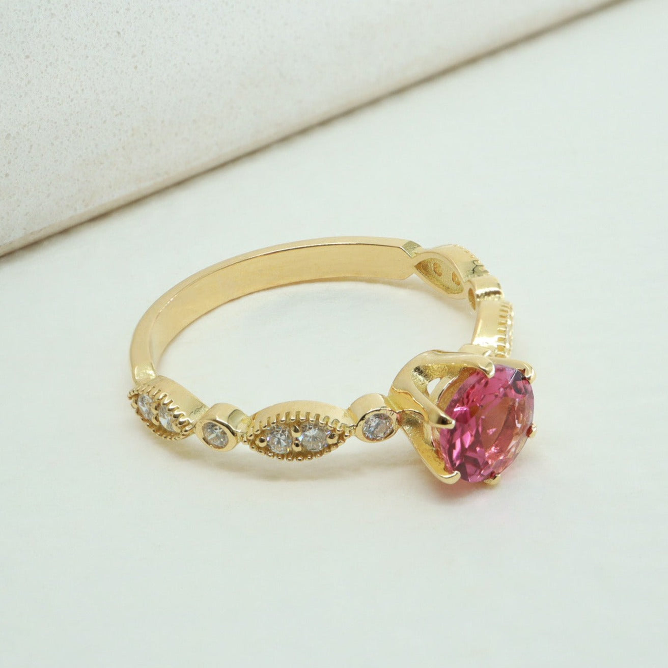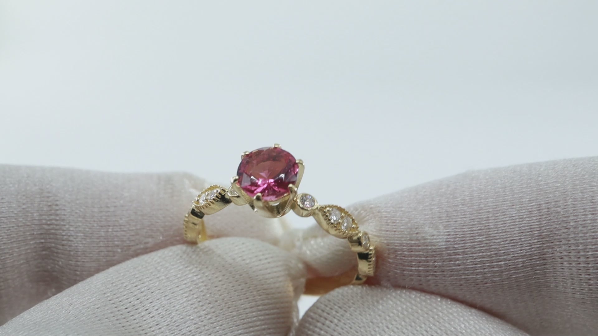 Pembe Turmalin & Pırlanta Vintage Yüzük