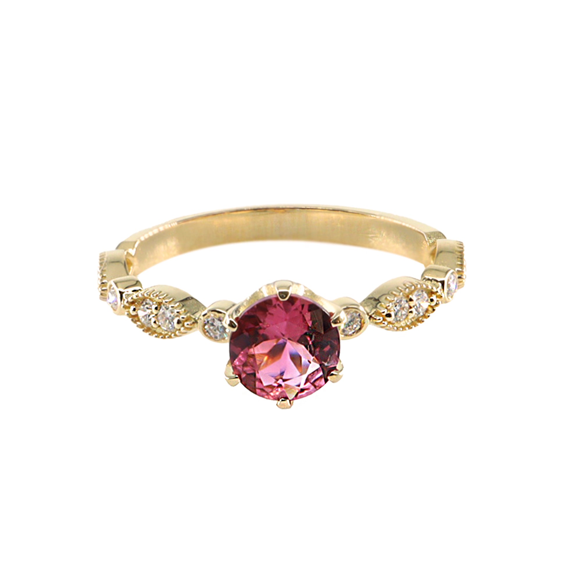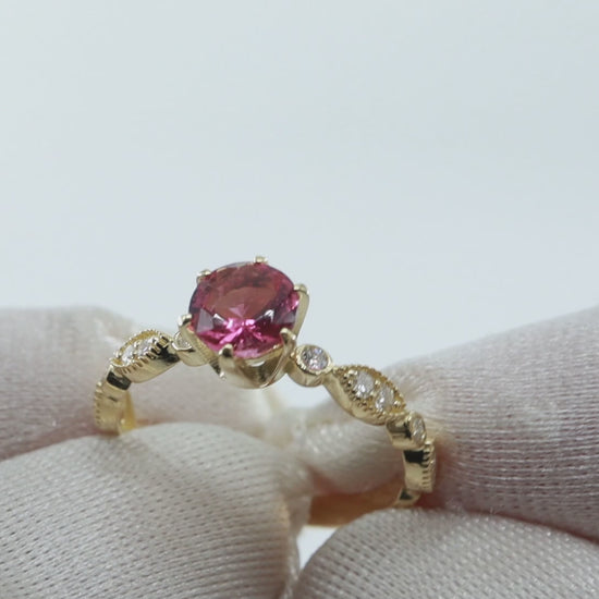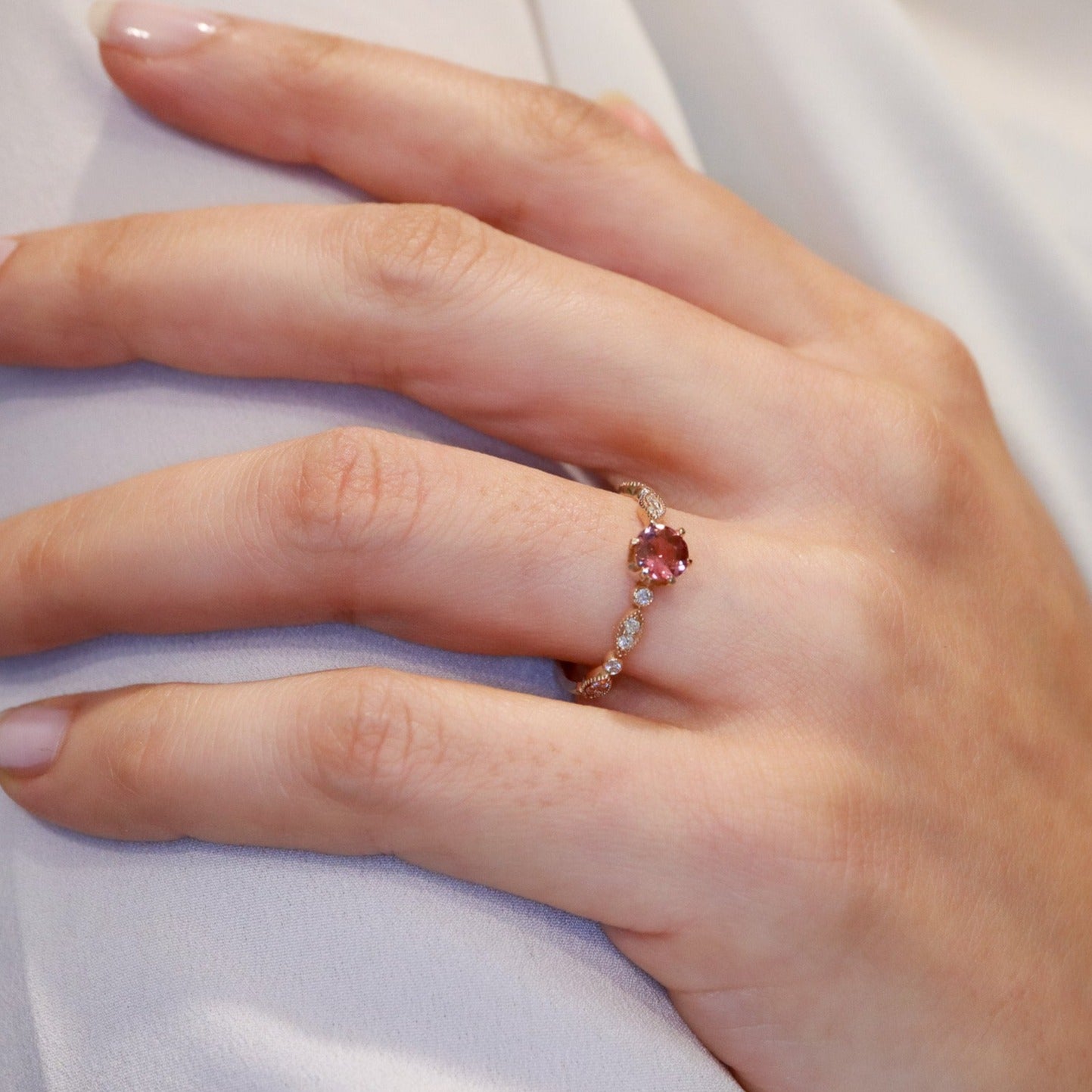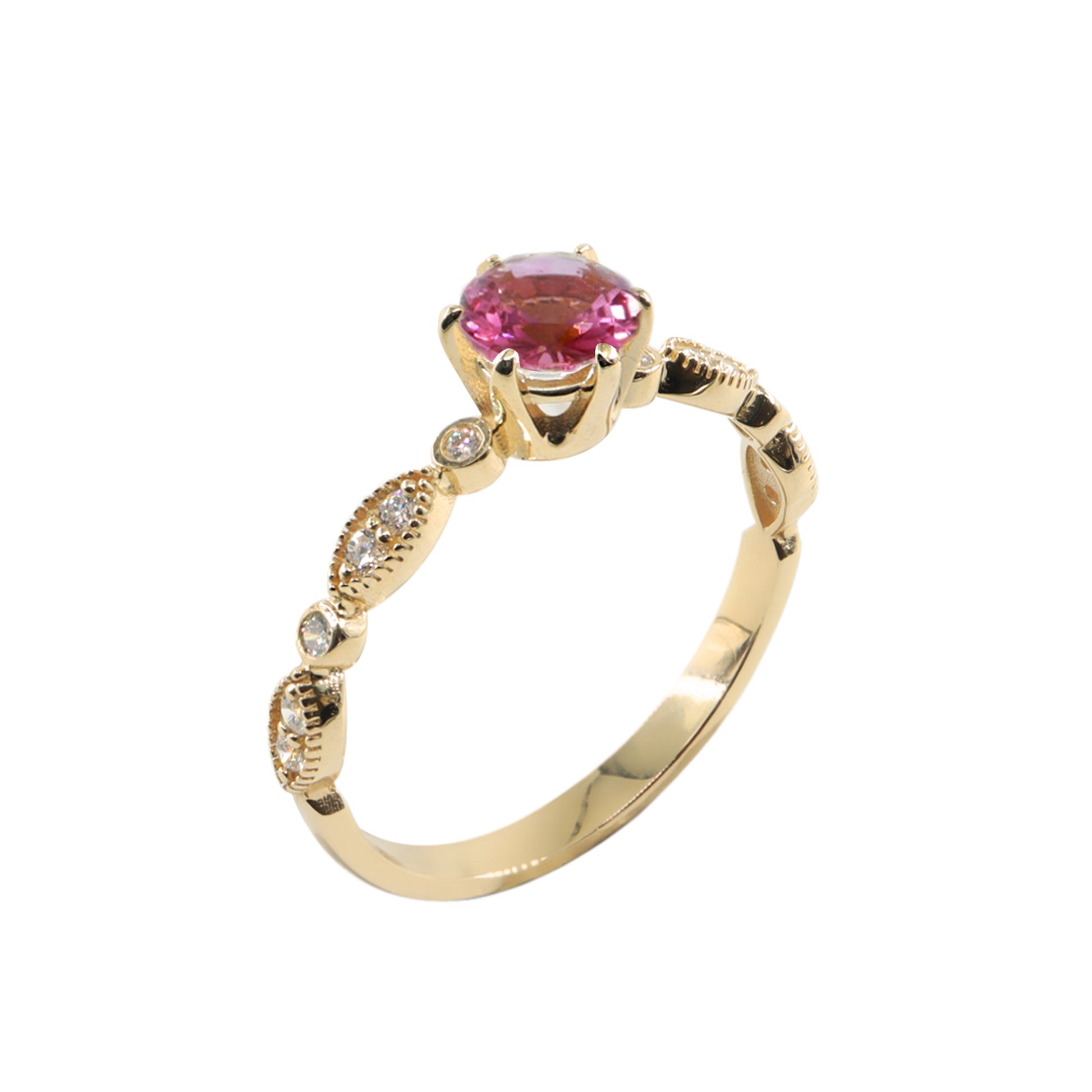 Pembe Turmalin & Pırlanta Vintage Yüzük