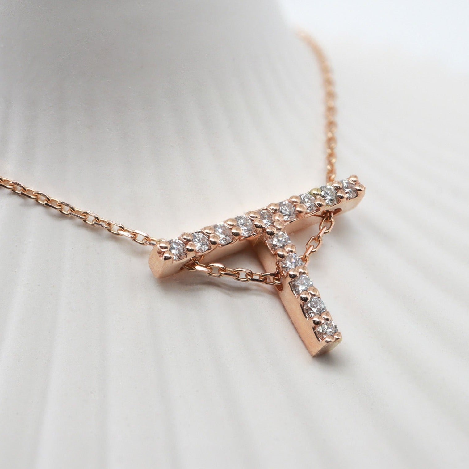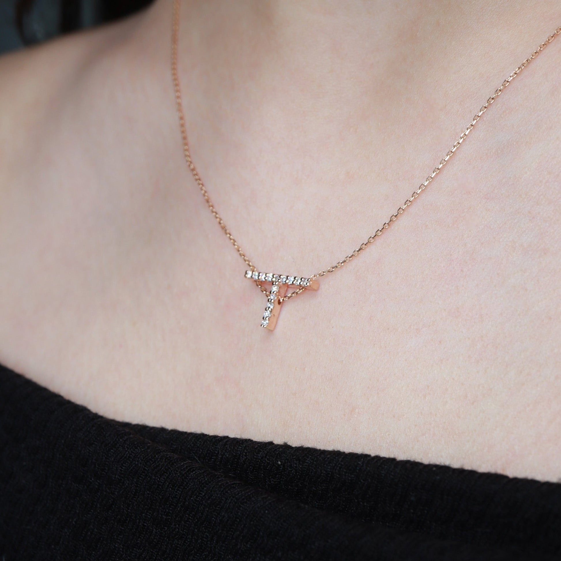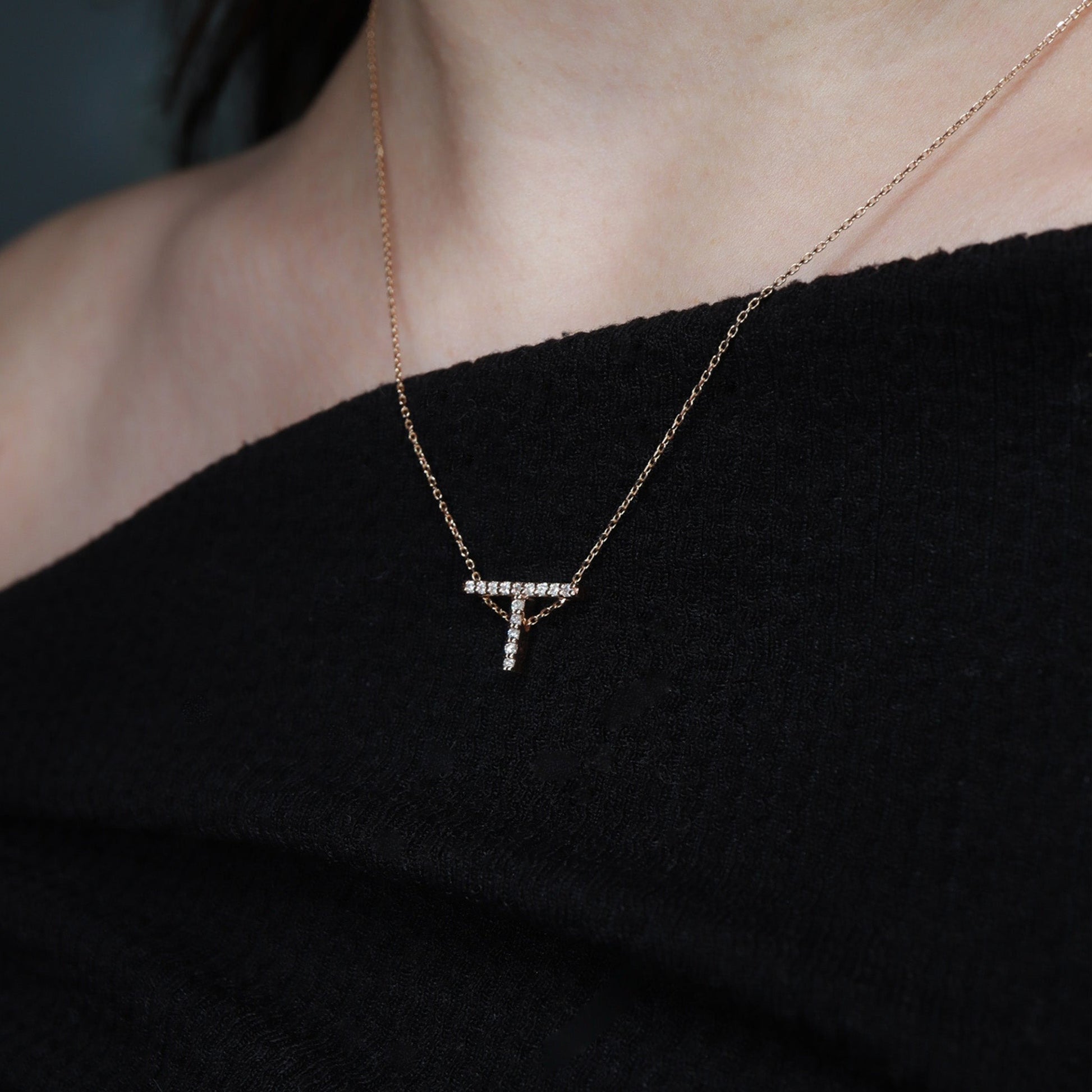 Pırlantalı T Harfi Kolye