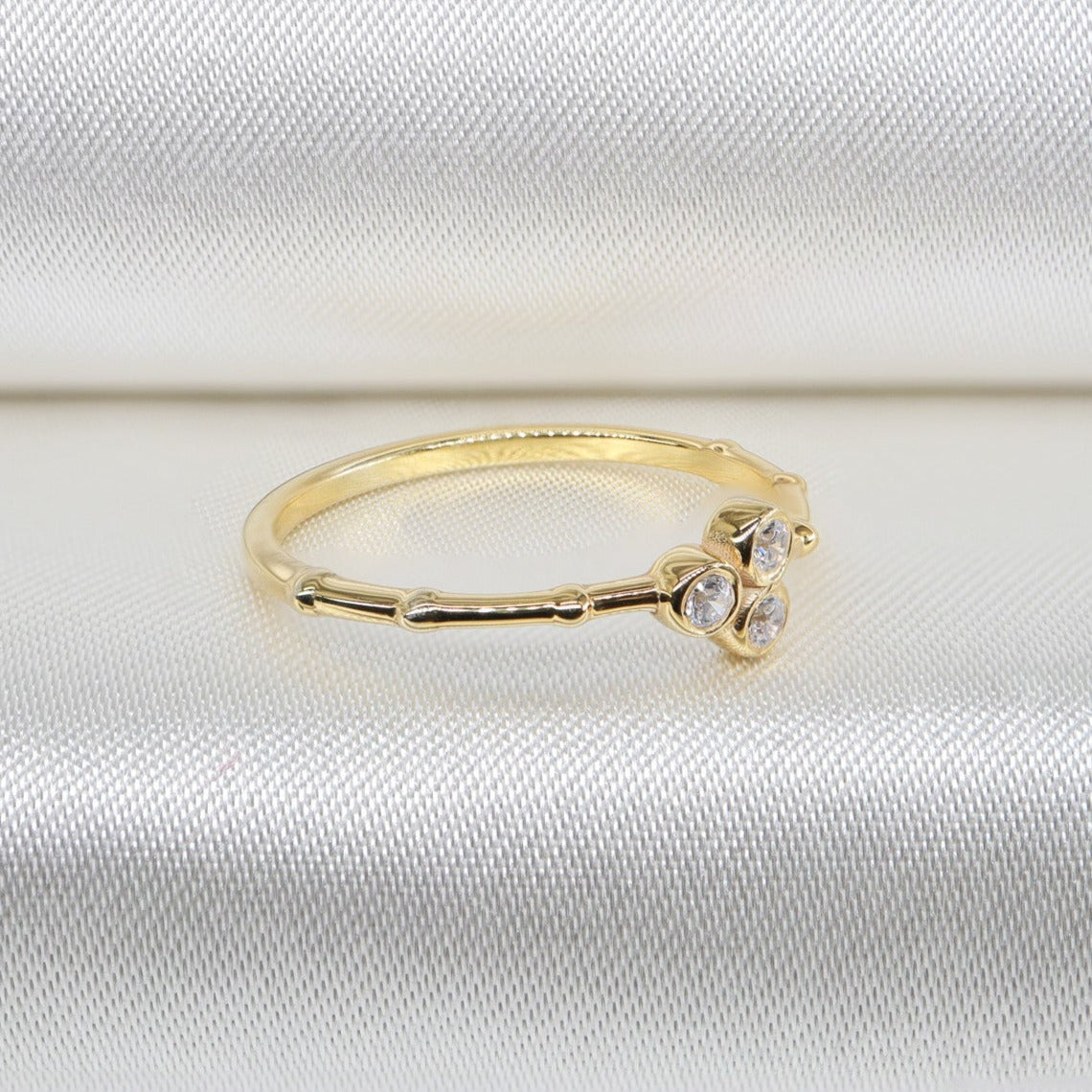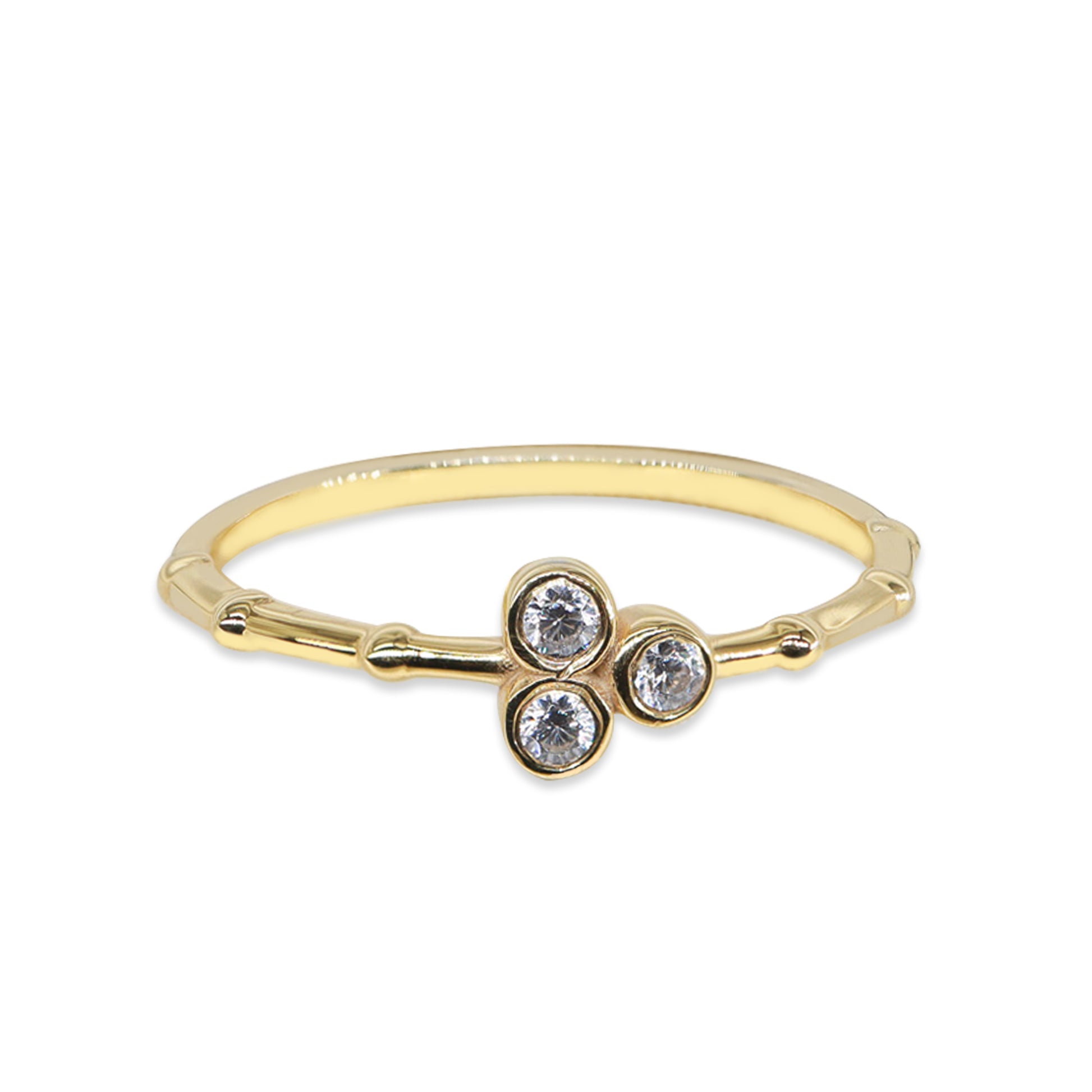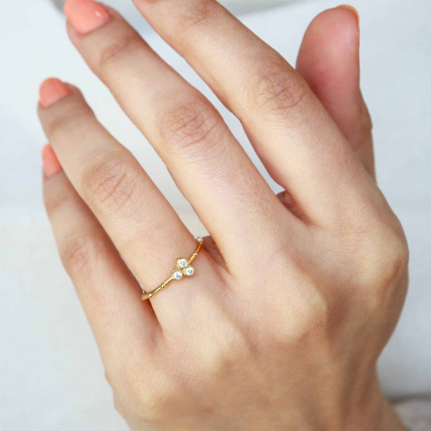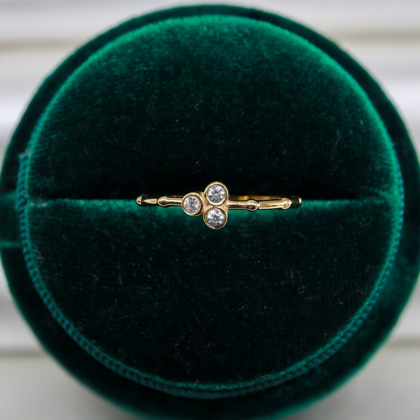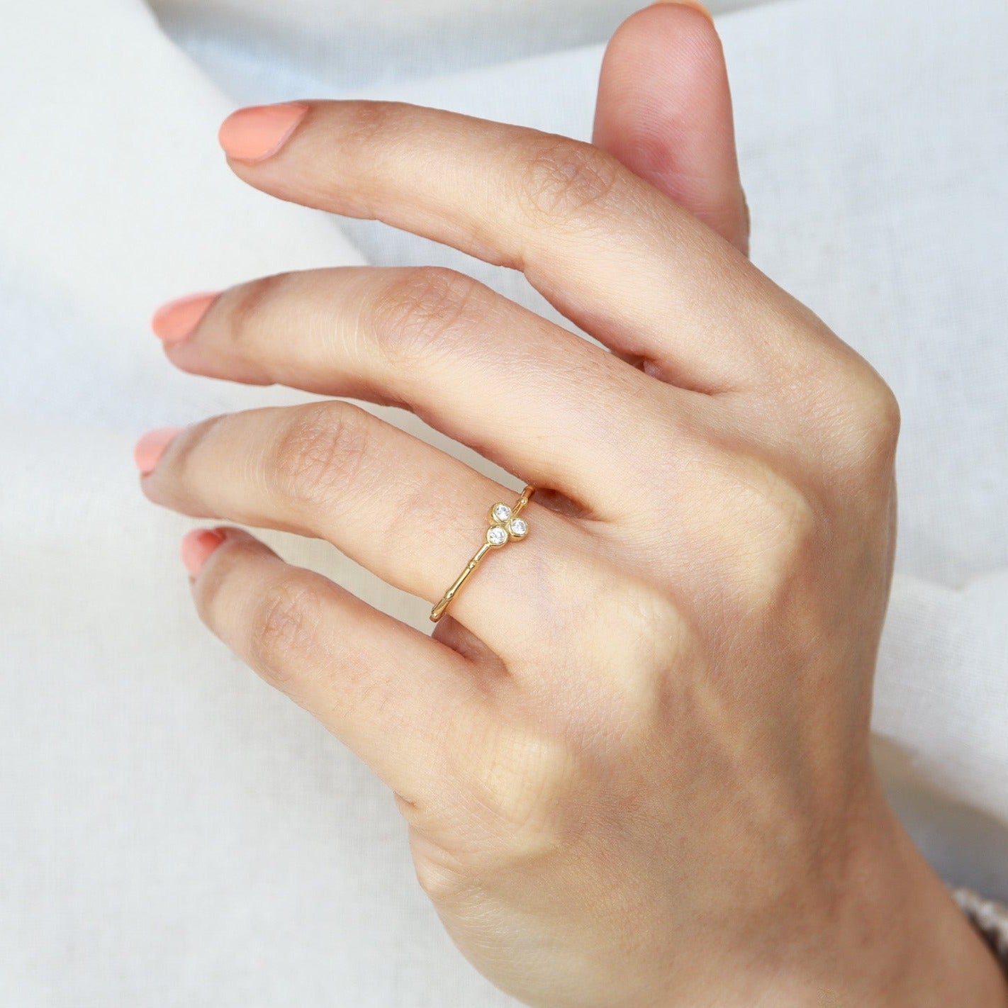 Üç Taşlı Pırlantalı Minimal Yüzük